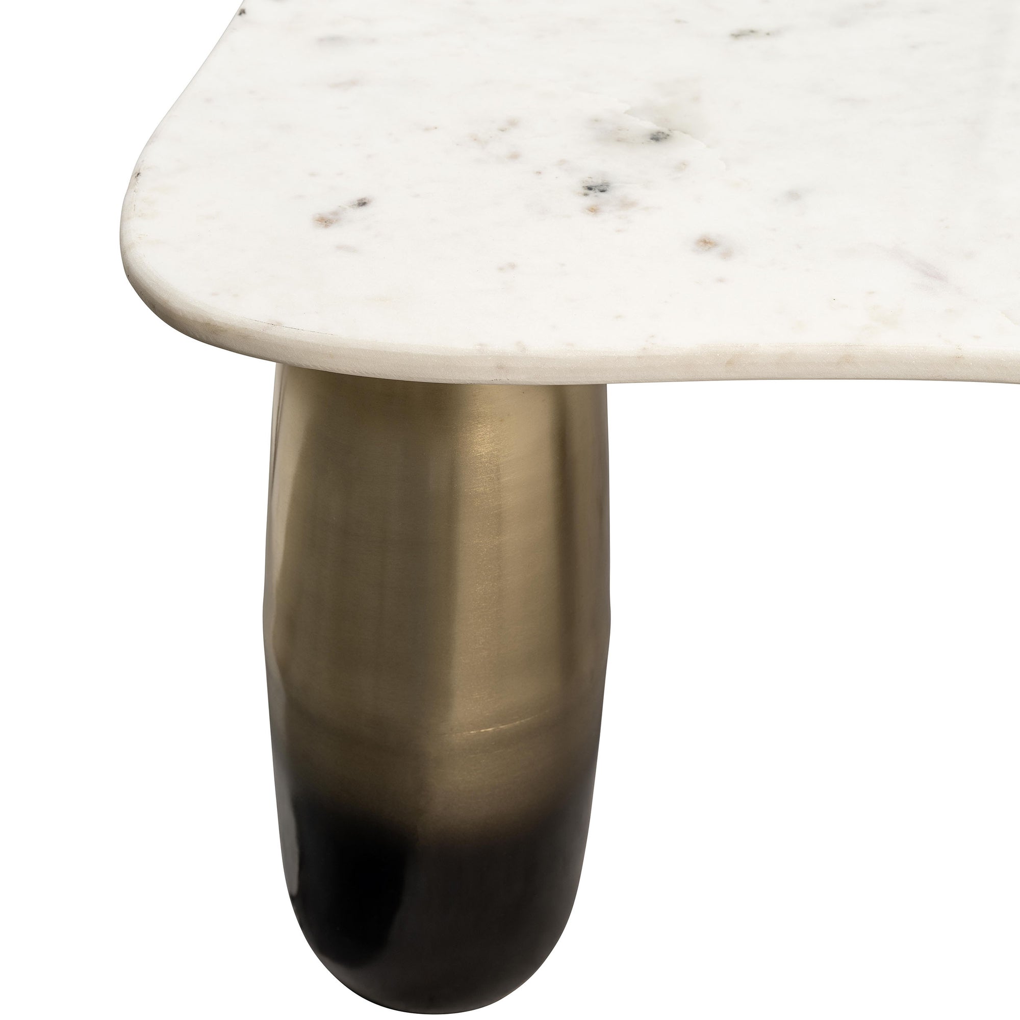 The Ombre Leg Marble Top Coffee Table exudes modern elegance and sculptural sophistication. Featuring a premium white marble top with subtle veining, it adds a luxurious touch to living rooms, offices, or bedrooms while providing a durable, easy-to-clean surface for everyday use. The four robust iron legs showcase a striking metallic gold finish that gracefully fades into deep black, creating a unique ombré effect and a bold visual statement. Combining high-quality materials with contemporary design, this coffee table serves as both a functional centerpiece and a captivating decorative accent, enhancing any interior with style, artistry, and timeless appeal.