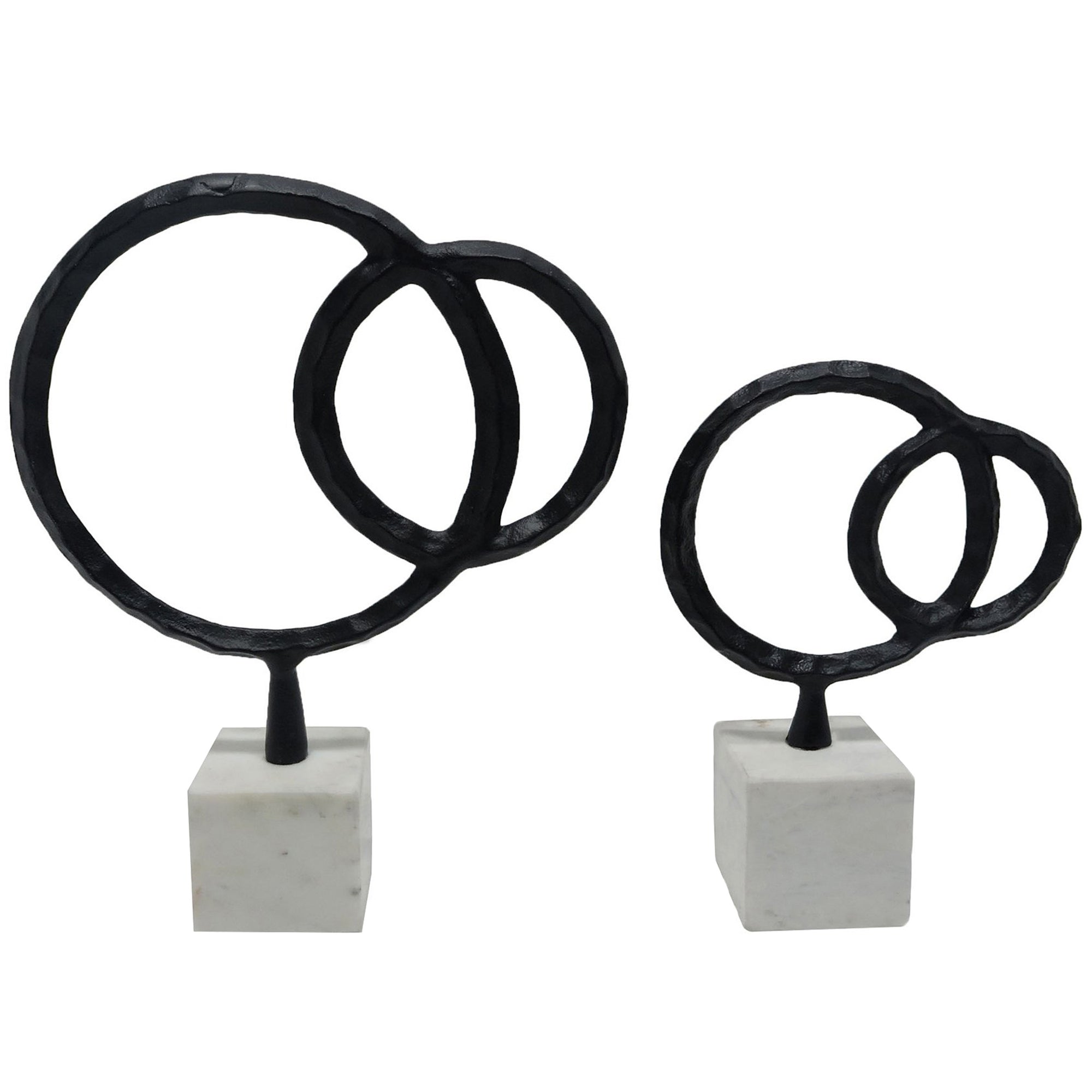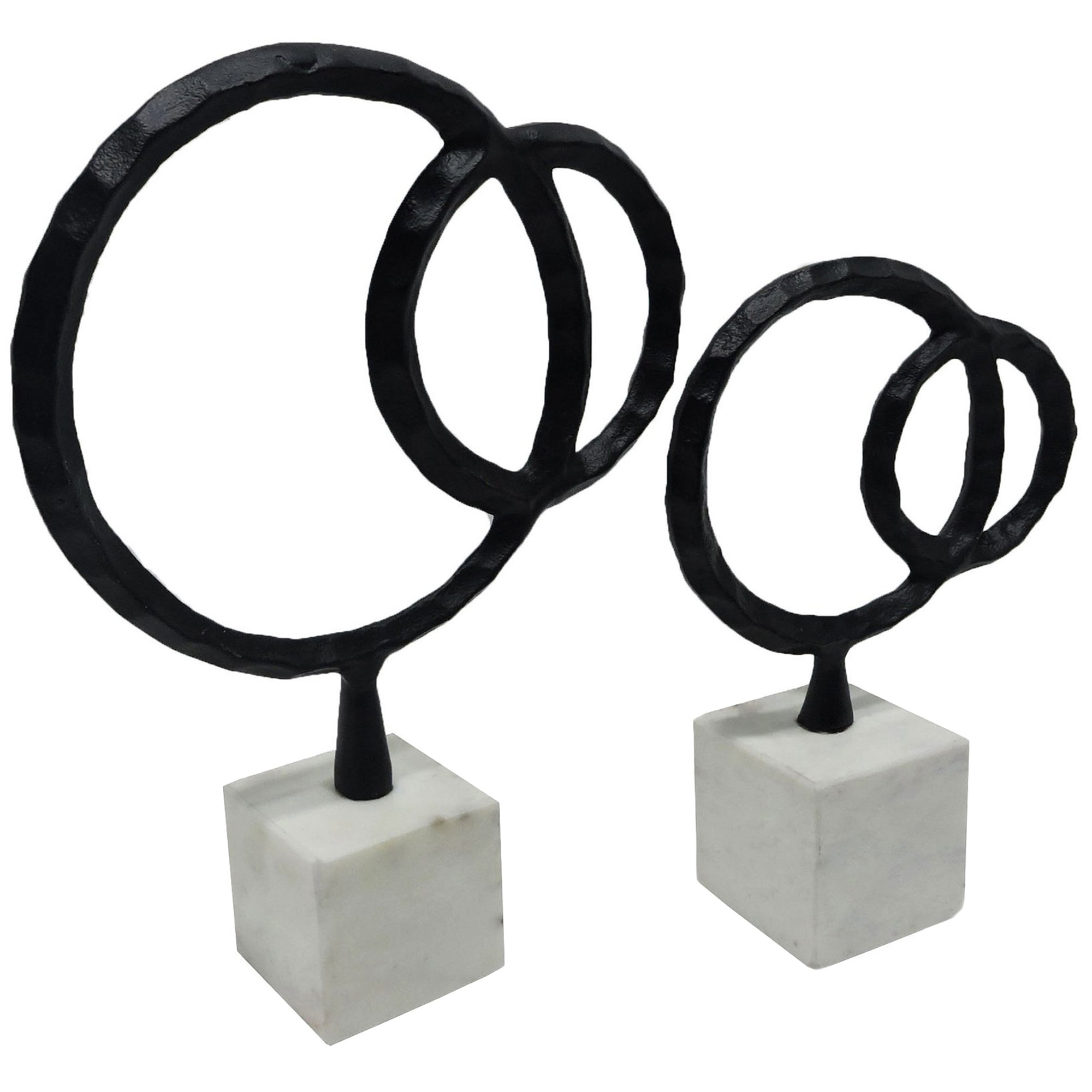 The Omega Sculptures feature a striking design that blends polished aluminum with a marble base. This pair of sculptural accents adds a refined, contemporary edge to bookshelves, consoles, or desks.