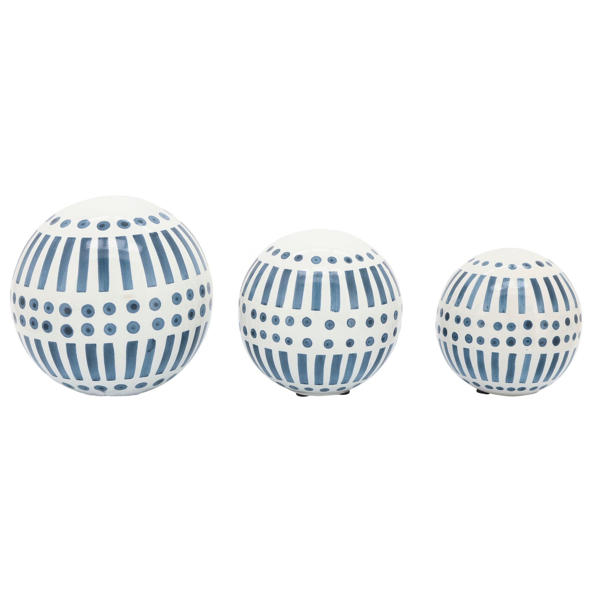 Enhance your home decor with this beautifully designed set of three decorative orbs, crafted from high-quality stoneware and ceramic. The Orbs unique hand-painted design adds texture and depth, making them an eye-catching addition to any setting. Whether you are decorating a new space or looking to refresh your current decor, these orbs provide an effortless way to introduce texture and color while maintaining a sophisticated and polished look.