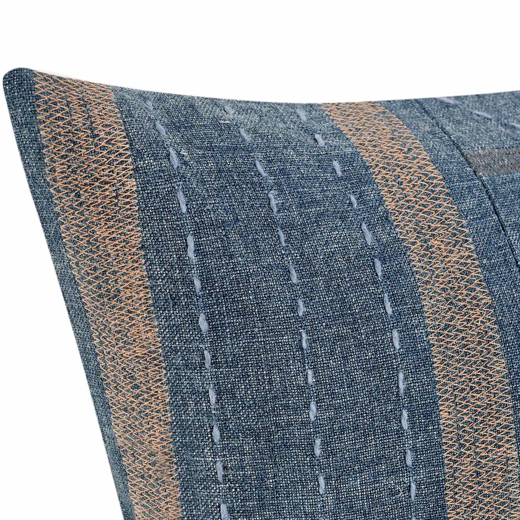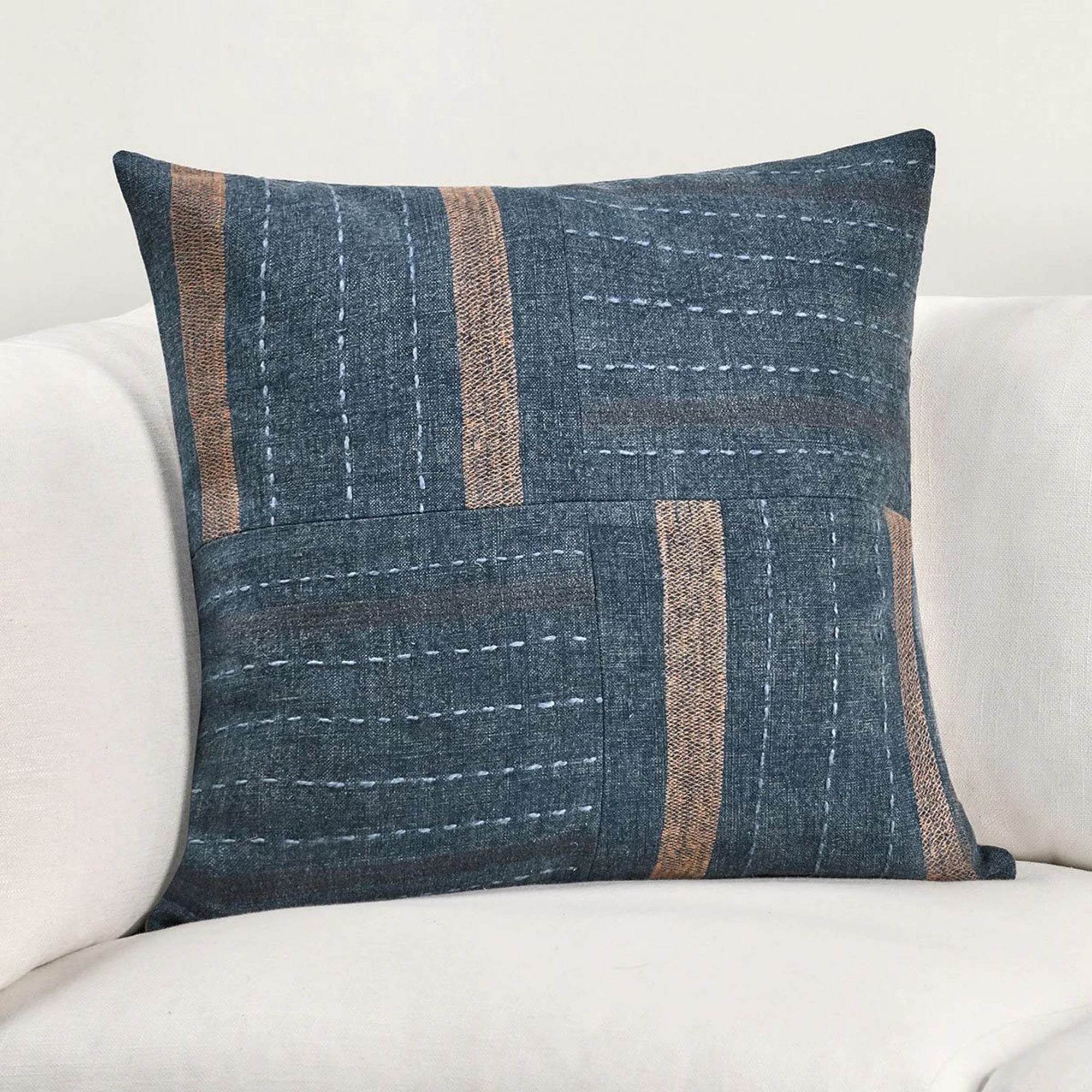 The Origin Pillow has a casual, vintage feel, crafted from dyed and stonewashed Belgian flax linen and hand-embroidered for a subtle textural effect. The stonewashing process creates subtle variations in color and texture, adding to the unique character of each pillow.