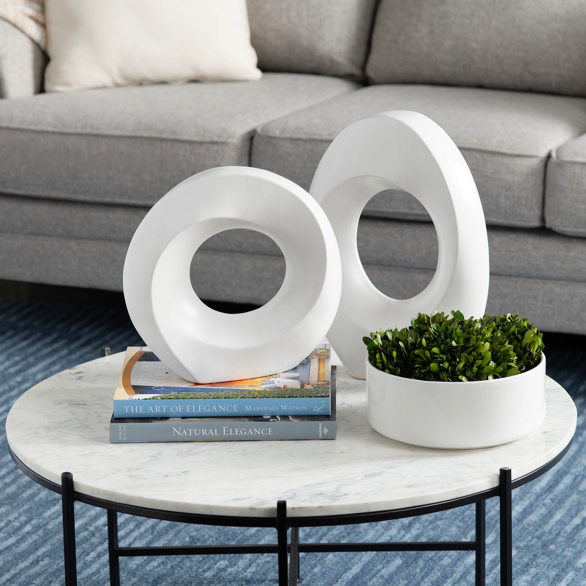 The Osborn Sculptures, White offer a minimalist sculptural form with a crisp white ceramic finish. This decorative accent brings a modern artistic edge to shelves, consoles, or tabletop displays with its clean lines and timeless design.