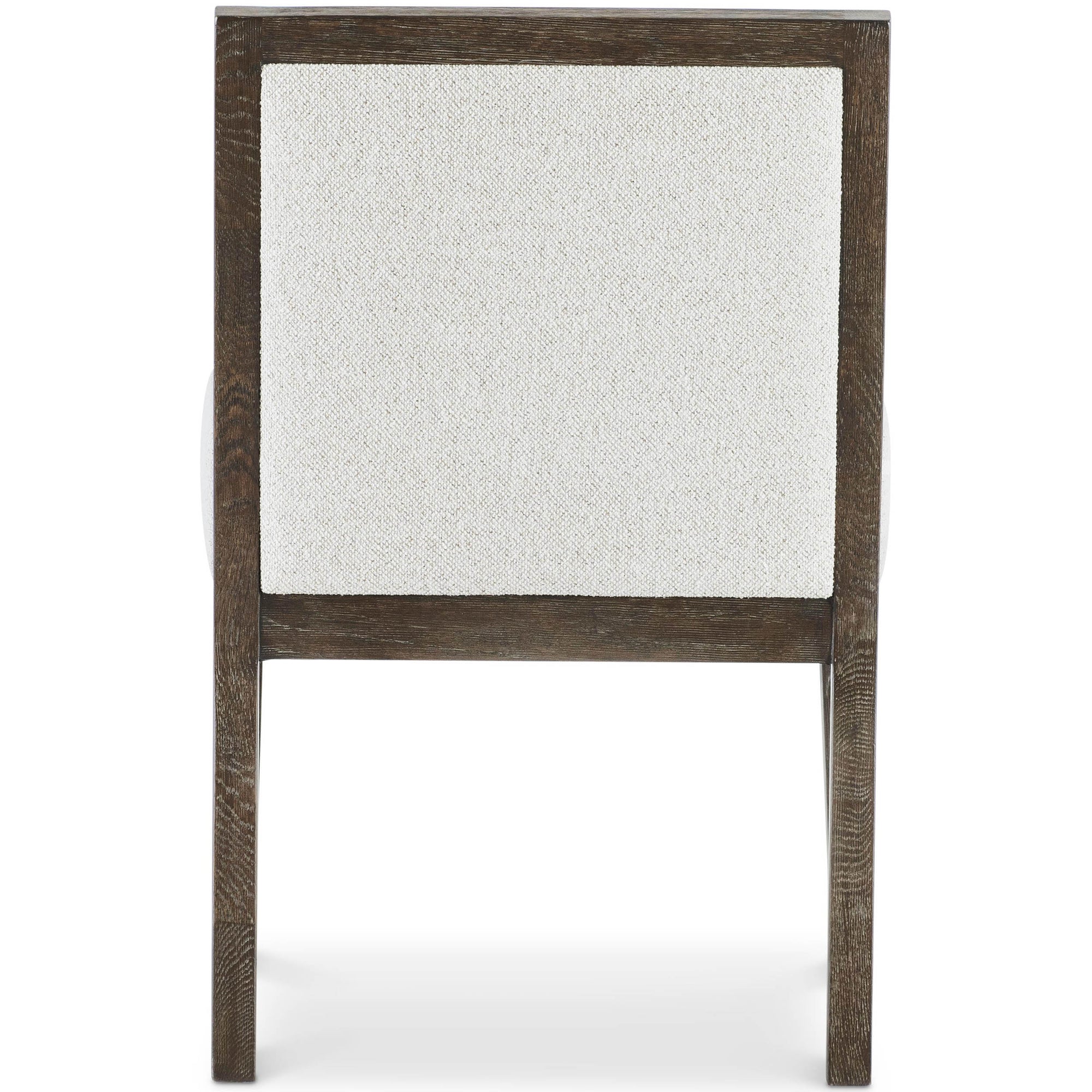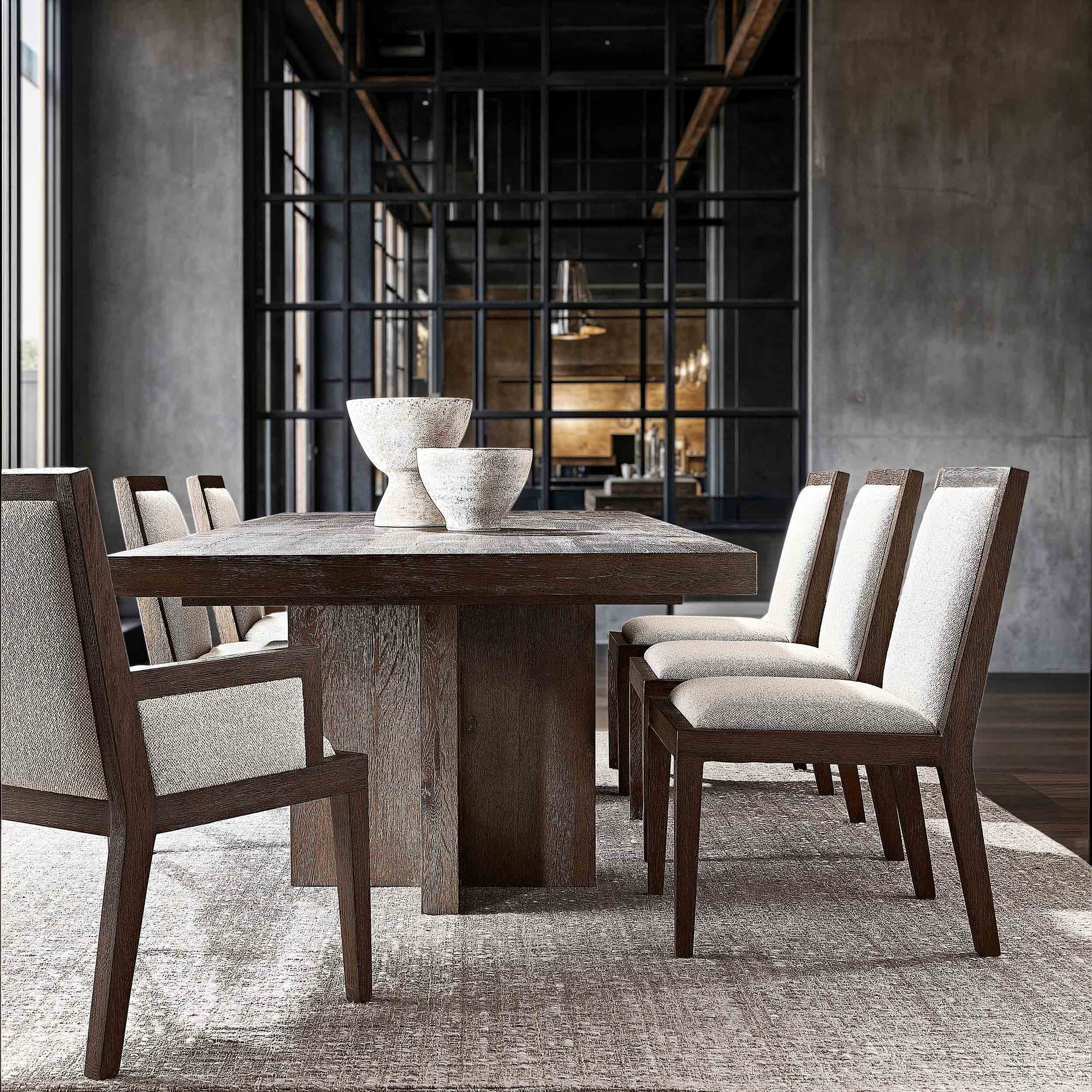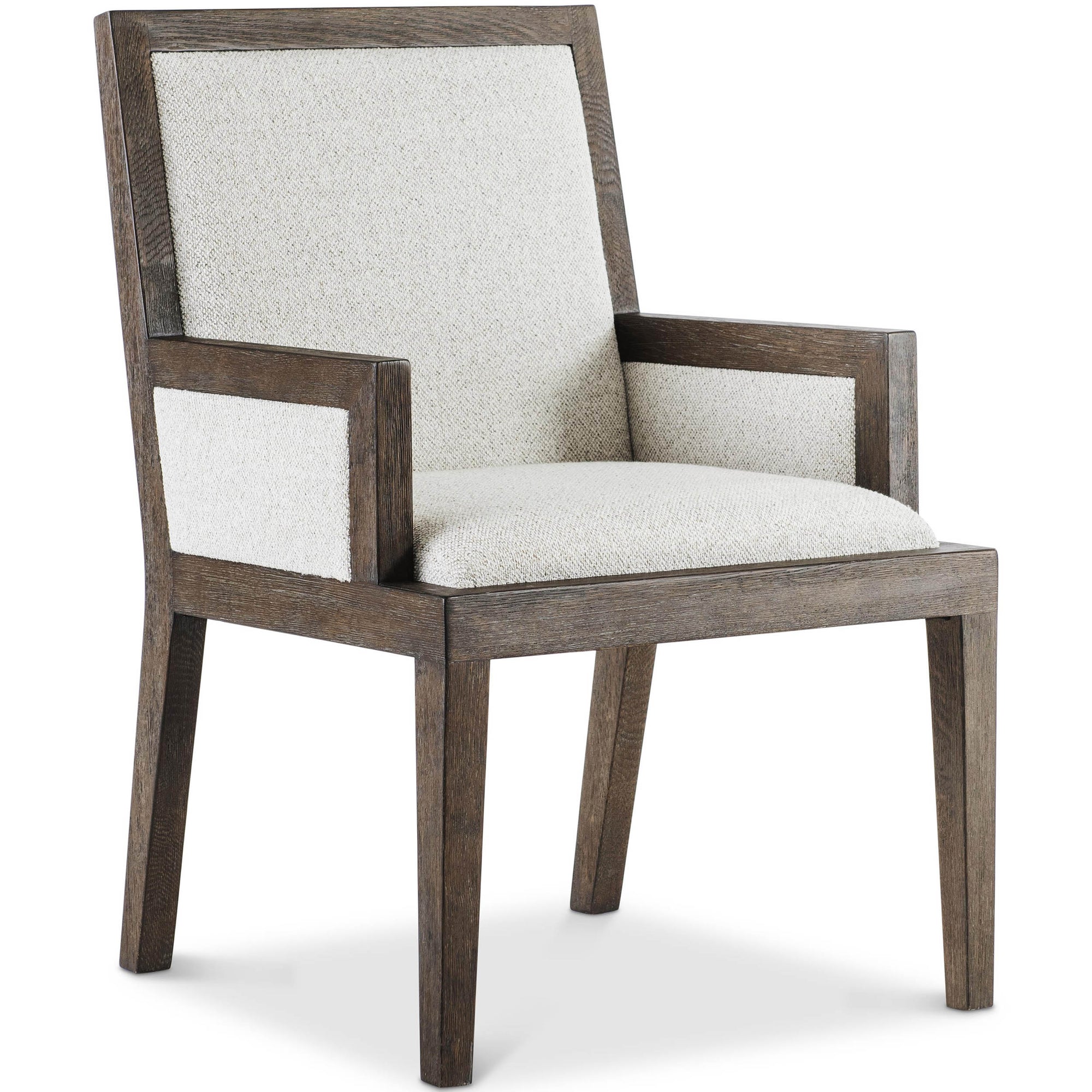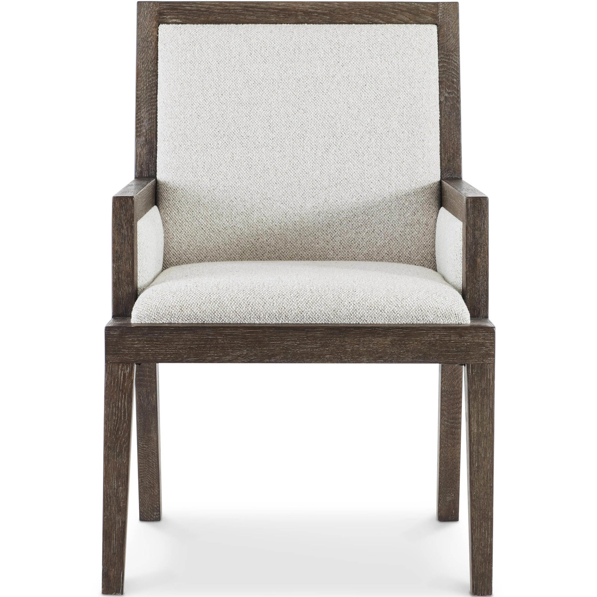 The Outline Arm Chair defines a modernist style with its striking exposed wood frame that beautifully contrasts with tightly upholstered panels. The textural, wire-brushed oak frame is finished in a casual Cassel hue, lending an organic warmth to the chair's sophisticated and architectural design.