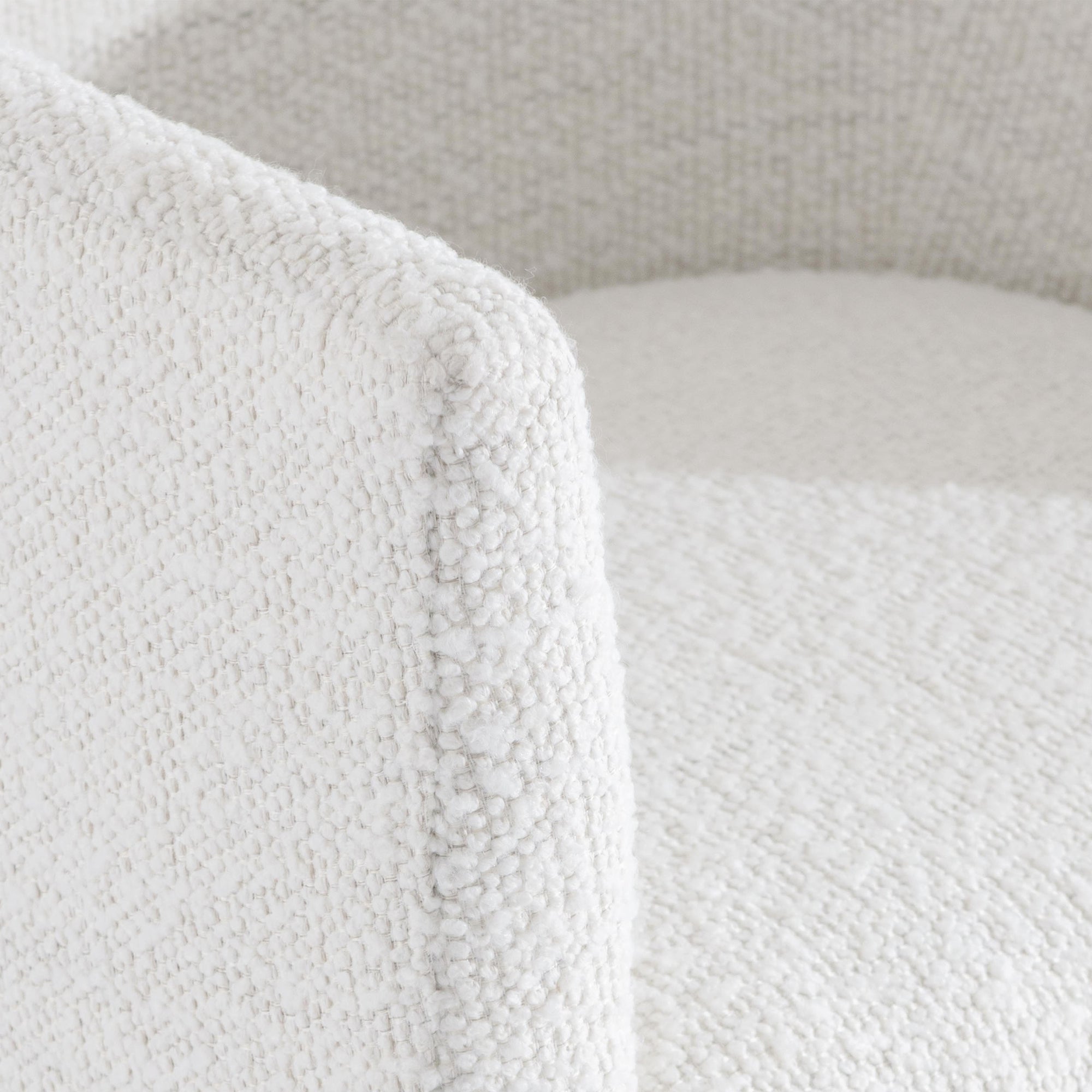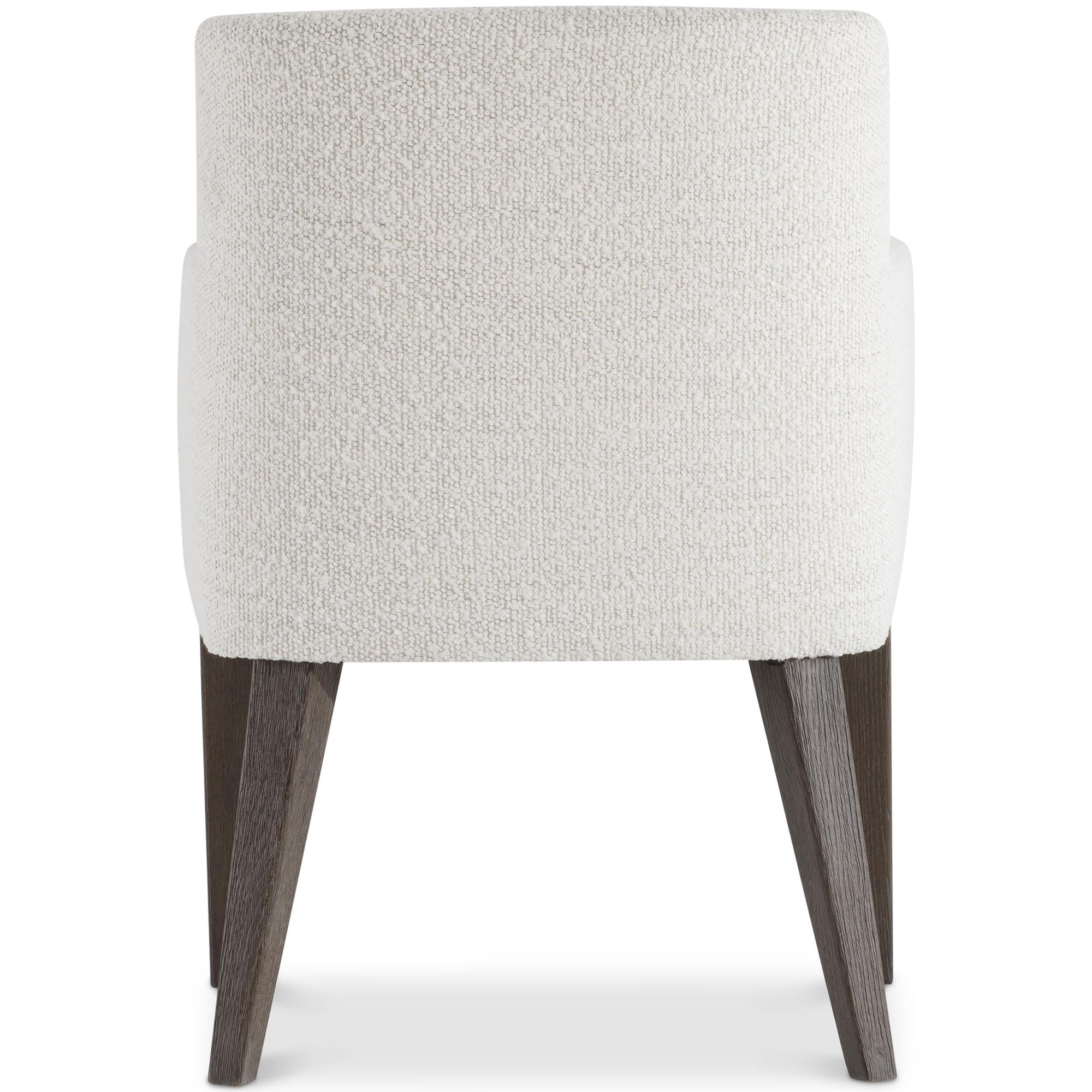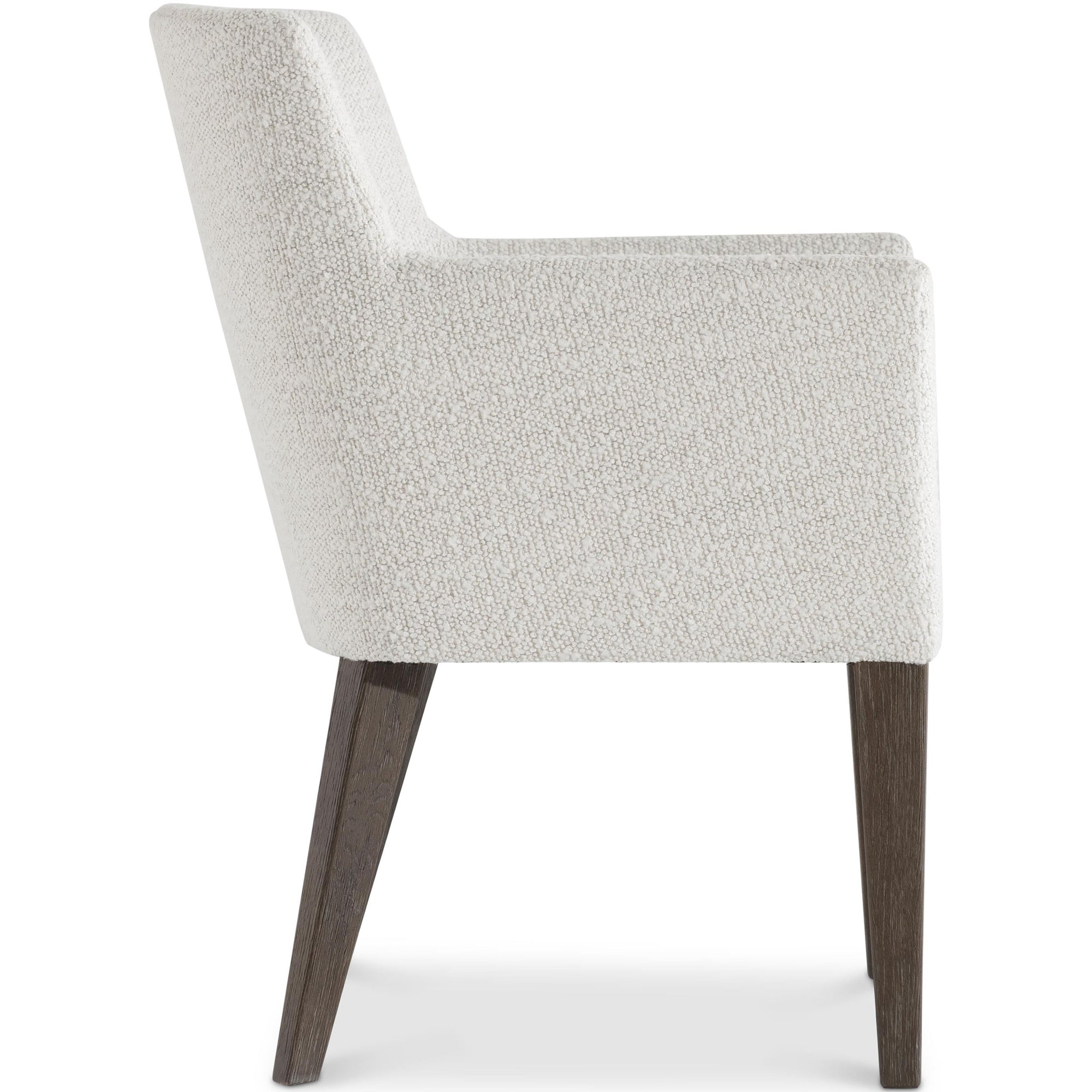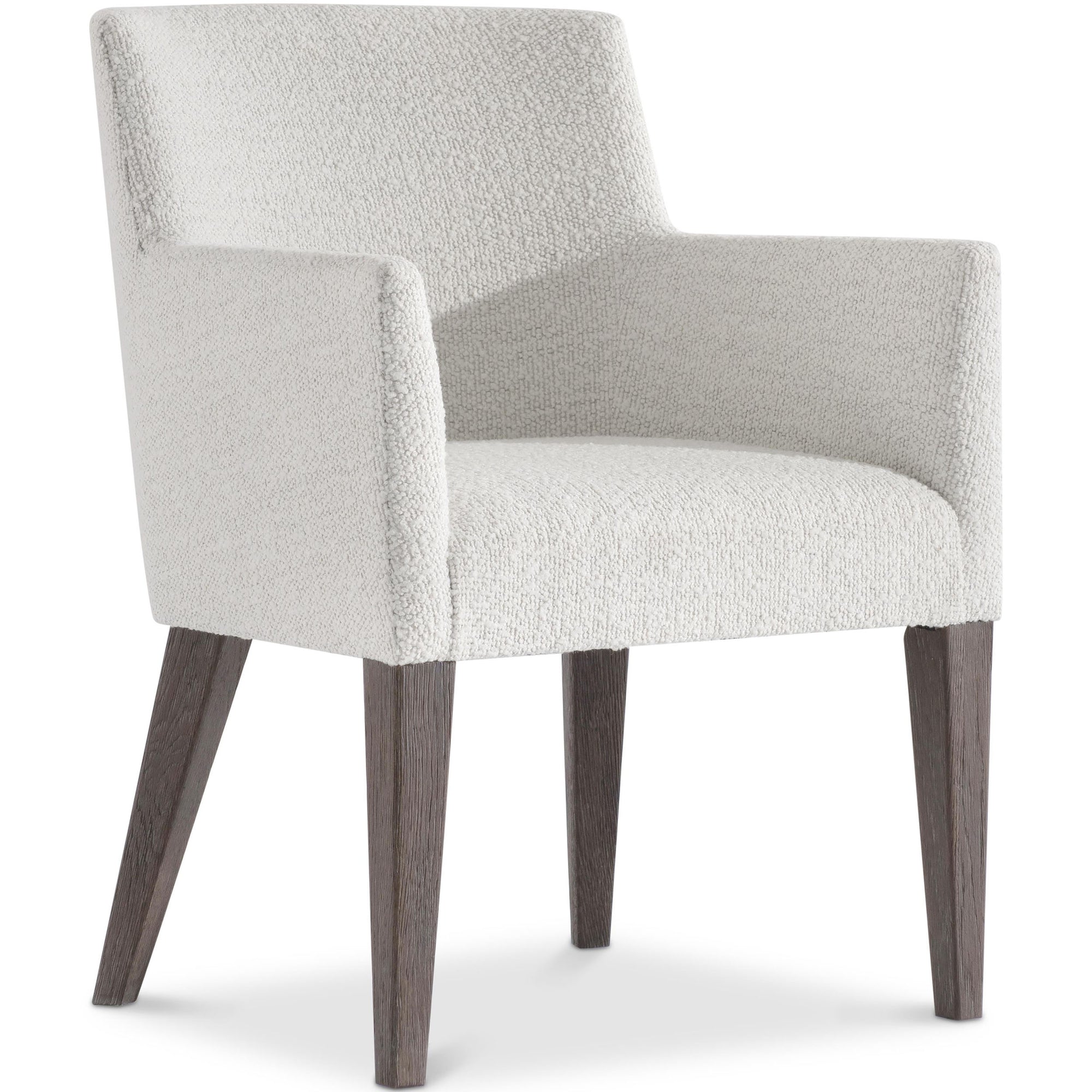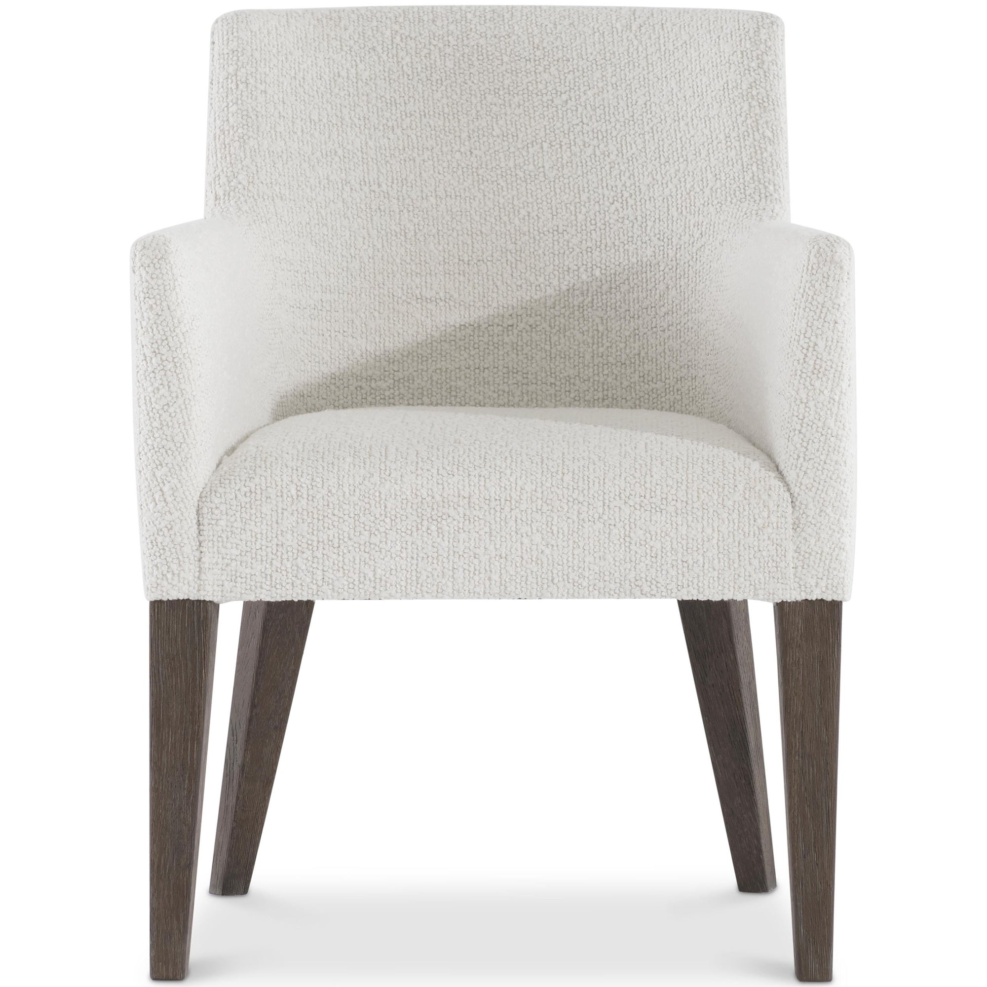 The Outline Upholstered Arm Chair presents a perfectly streamlined modern style. Its sleek silhouette appears simple yet sophisticated, featuring tight upholstery and beautifully softened lines for a clean, tailored look. The design is completed by exposed, wire-brushed oak legs in a rich Cassel finish, adding a warm, organic contrast.