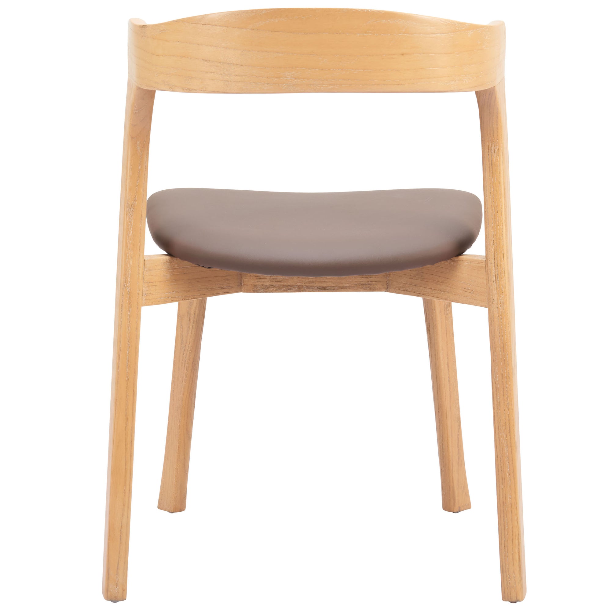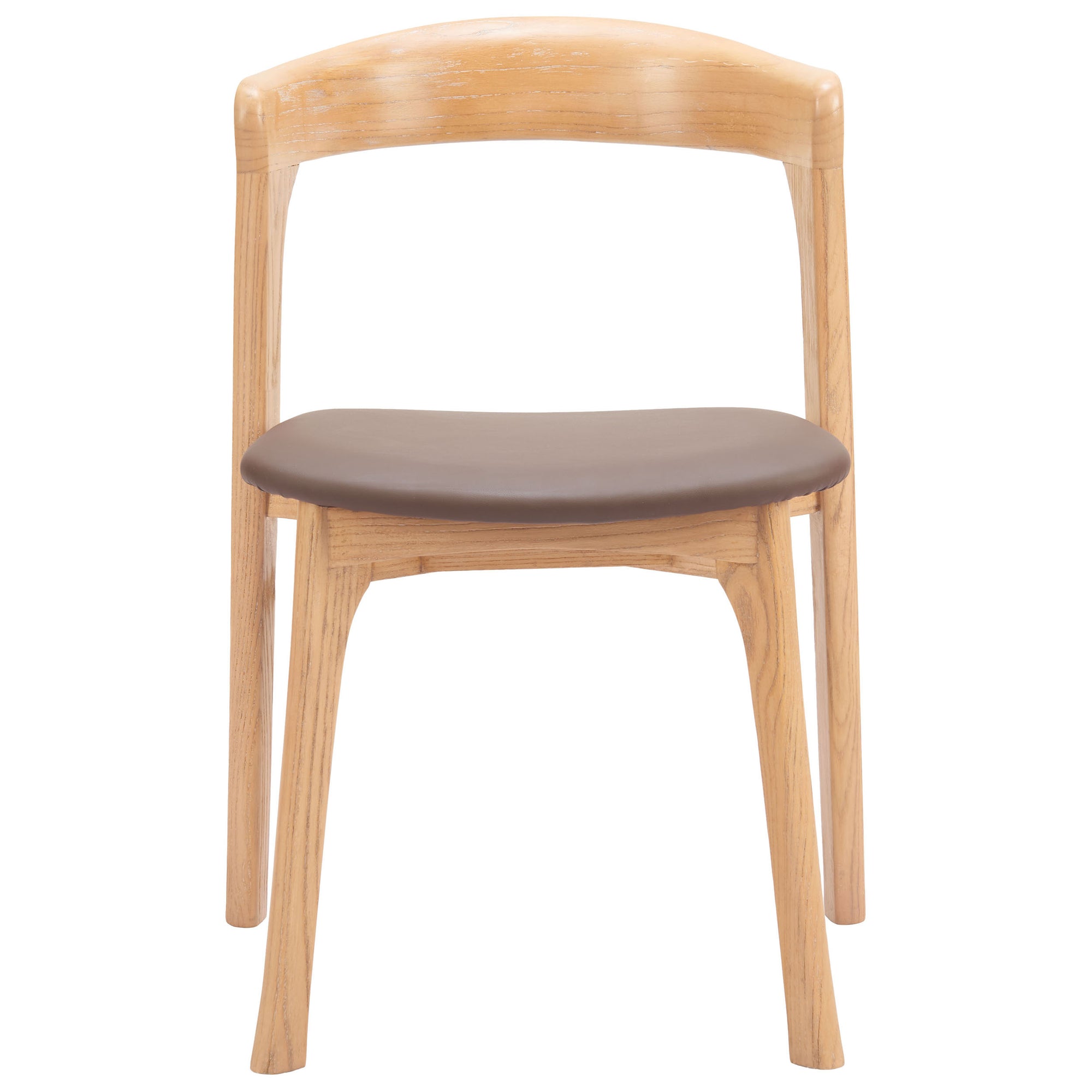 The Pioro Dining Chair blends modern style with comfort, creating a refined look for any dining space. This chair is upholstered in a sleek, brown faux leather that offers both a sophisticated look and easy maintenance. The elegant frame is crafted from solid, whitewashed elm wood, providing a beautiful, natural contrast and durable support. Ideal for hospitality settings or as a chic update to your dining room, the Pioro Dining Chair delivers a timeless and comfortable seating experience.