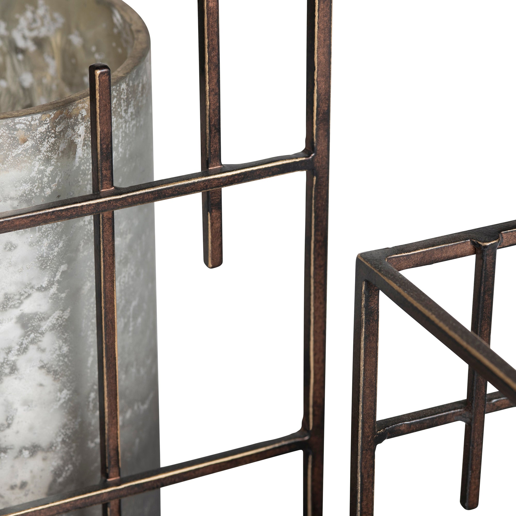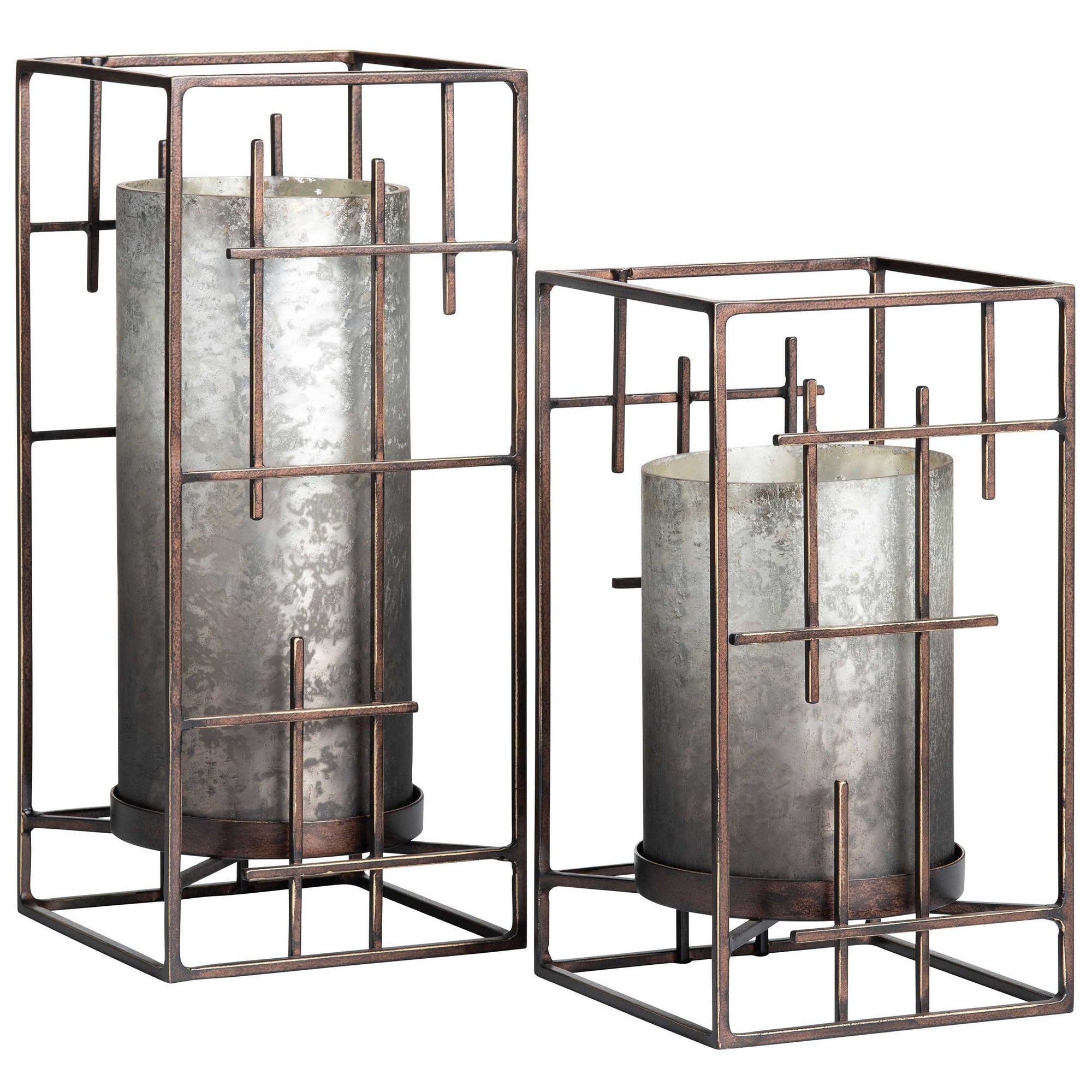 The Plaid Hurricanes feature a glass and metal design with a silver finish and a distinctive square-patterned cage. Perfect for holding candles safely, these transitional-style hurricane candleholders make a striking accent on any tabletop, centerpiece, or console.