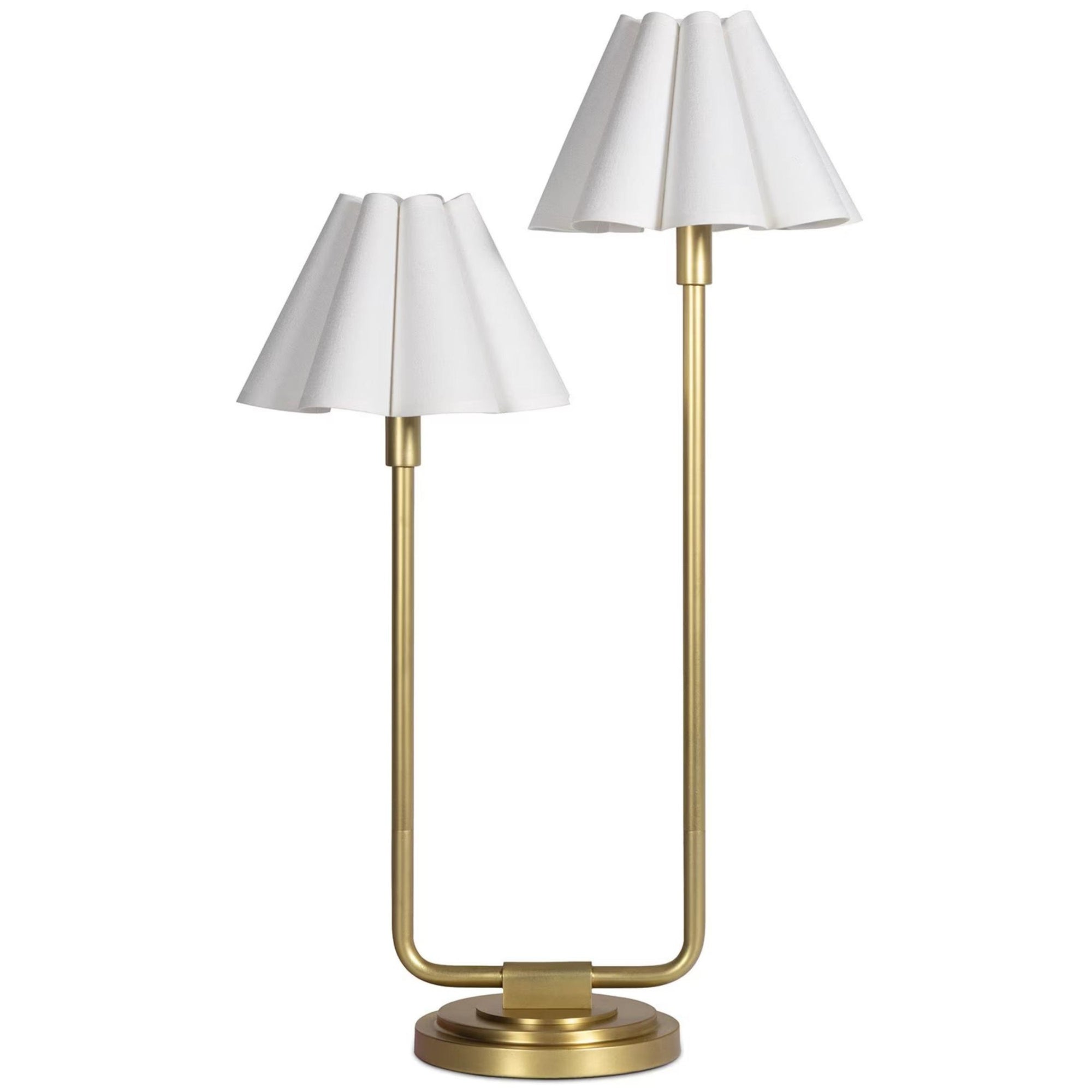 The Polly Double Arm Table Lamp offers a fresh, imaginative take on a classic silhouette. Slim natural brass arms extend to varied heights, each crowned with a woven rattan shade delicately finished with natural trim. This layered design adds dimension and visual interest while maintaining an airy, elegant presence. Perfectly balancing classic charm with modern sophistication, the lamp brings warmth and refined style to consoles, desks, or bedside tables. Its twin shades and graceful form create an unexpected focal point, elevating any space with subtle, timeless elegance.