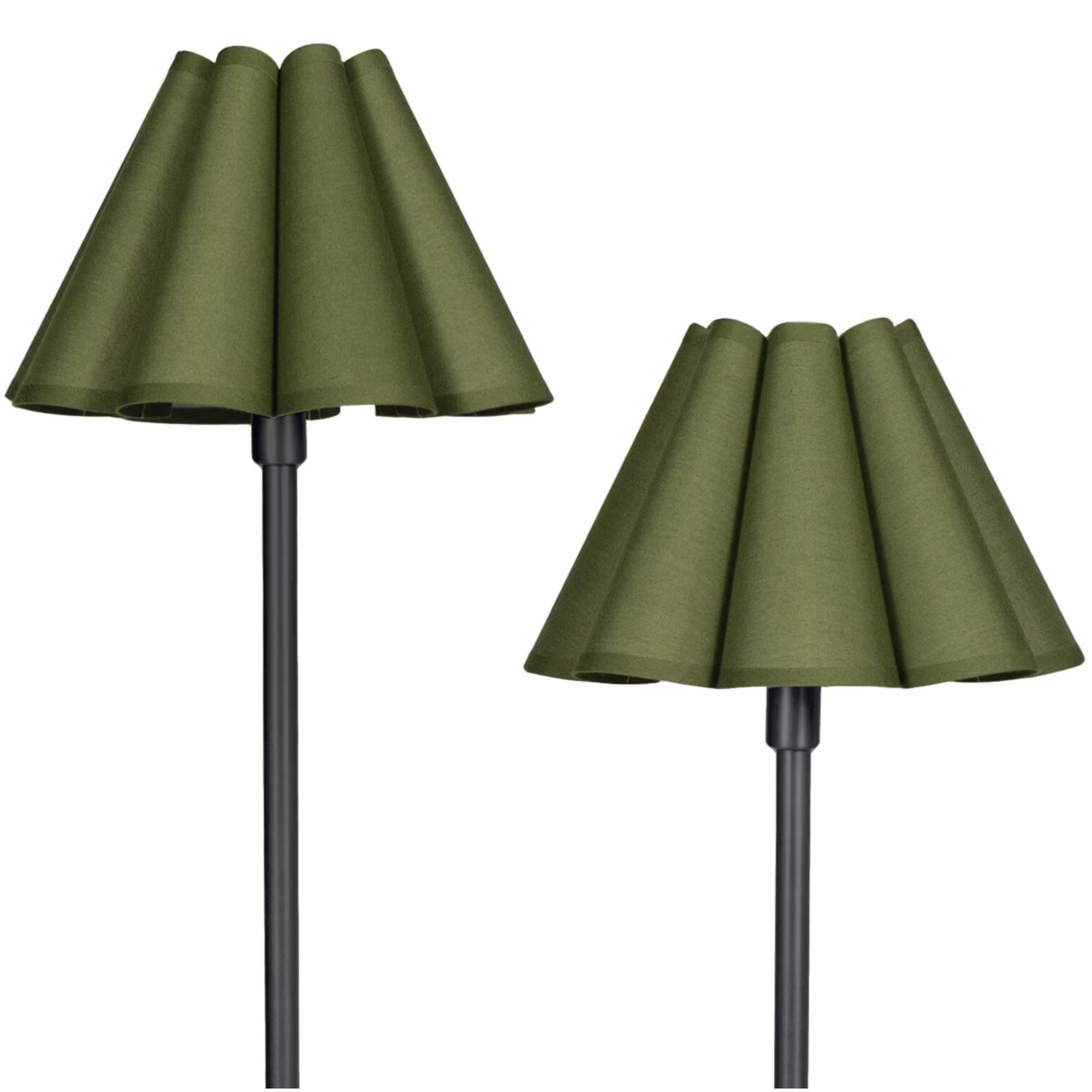 The Polly Floor Lamp combines timeless elegance with a touch of artistry. Featuring two green scalloped shades, it casts a soft, comforting glow that enriches any room with its rich verdant hue. The asymmetrical base introduces a dynamic, multi-level effect, striking a perfect balance between classic charm and contemporary design. Versatile and refined, this lamp is ideal for entryways, bedrooms, or living spaces, where it serves as both a functional light source and a statement-making accent. With its unique form and stylish presence, the Polly Floor Lamp elevates any interior with effortless sophistication.