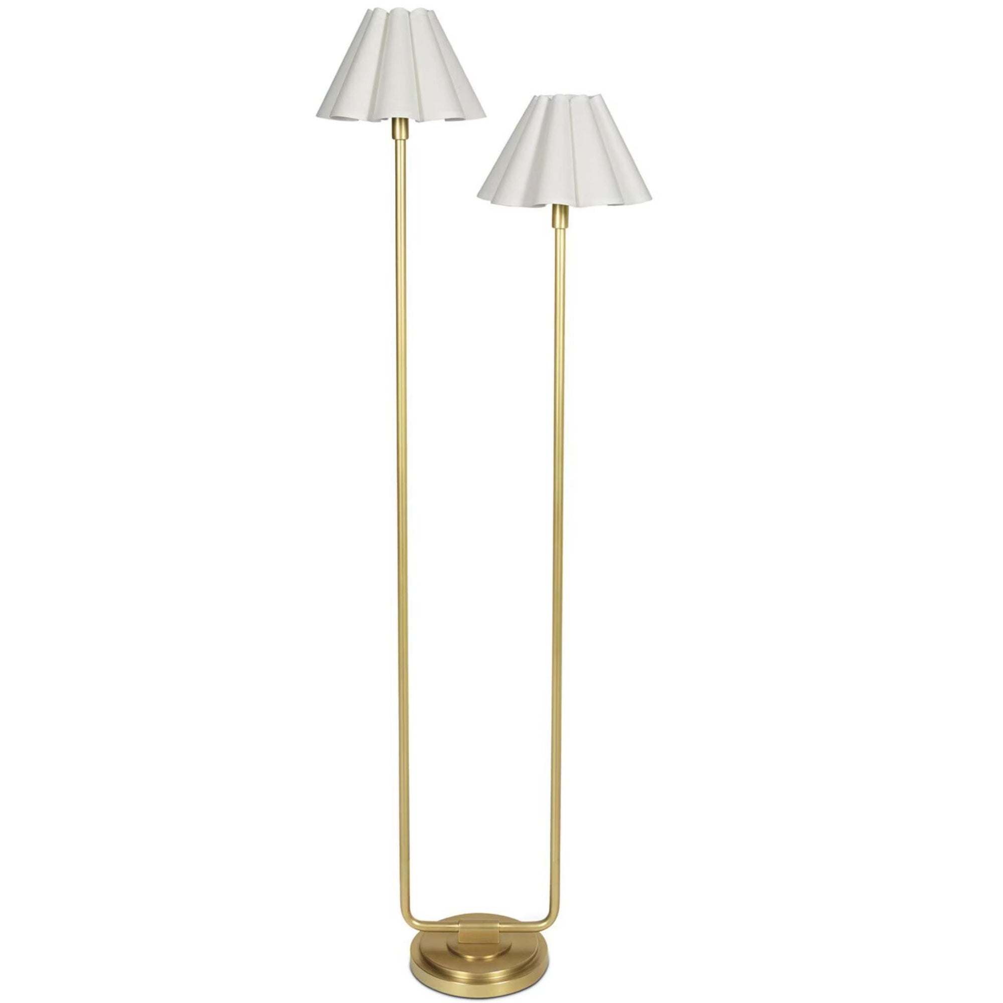 The Polly Floor Lamp combines timeless elegance with a fresh, modern touch. Featuring two white scalloped shades, it casts a soft, comforting glow that brightens any space with its crisp, clean hue. Its asymmetrical base adds an artistic element, creating a multi-level effect that bridges classic and contemporary design. Versatile and refined, this lamp is perfect for entryways, bedrooms, or living rooms, where it serves as both a functional light source and a statement-making accent. With its graceful silhouette and distinctive style, the Polly Floor Lamp elevates any interior with understated sophistication.