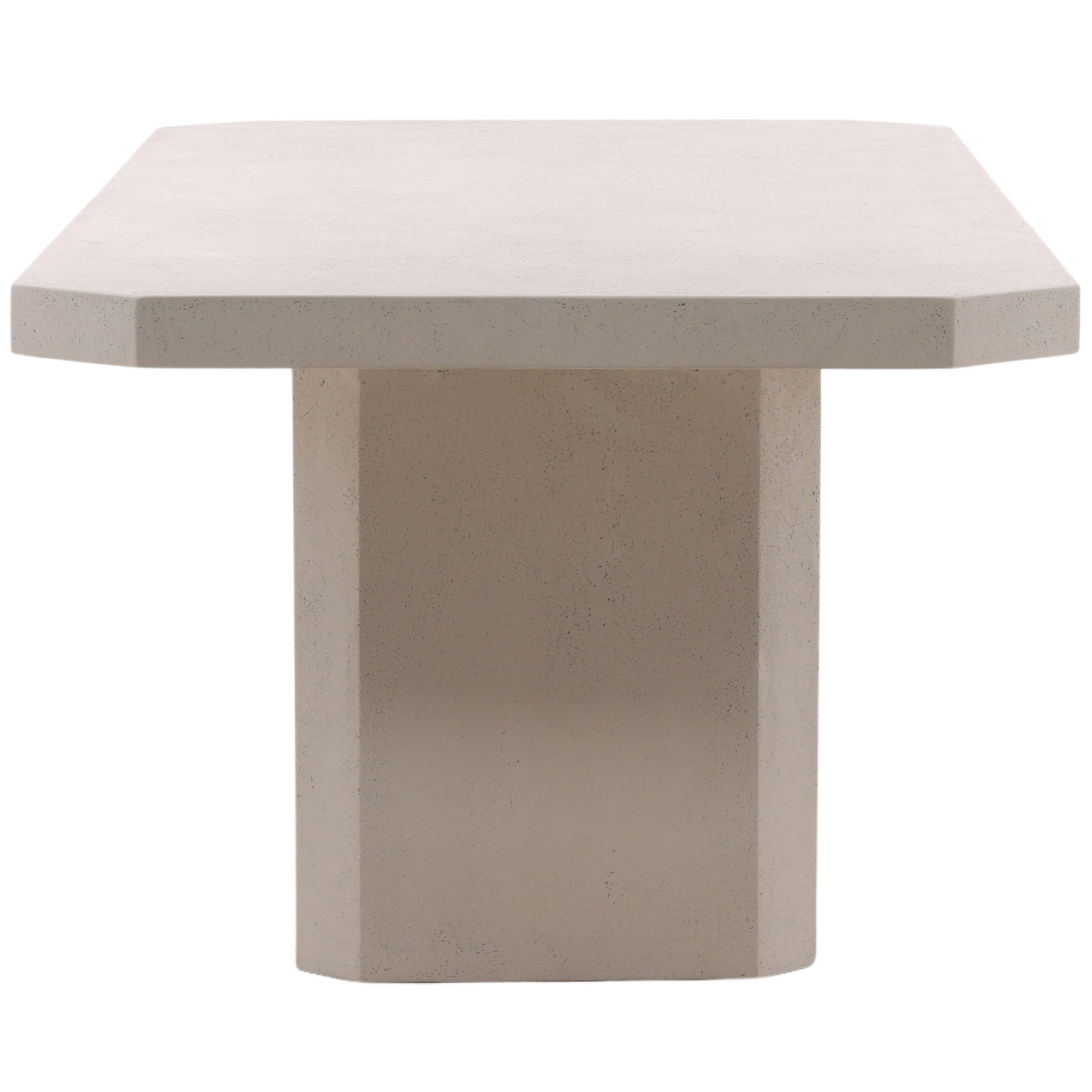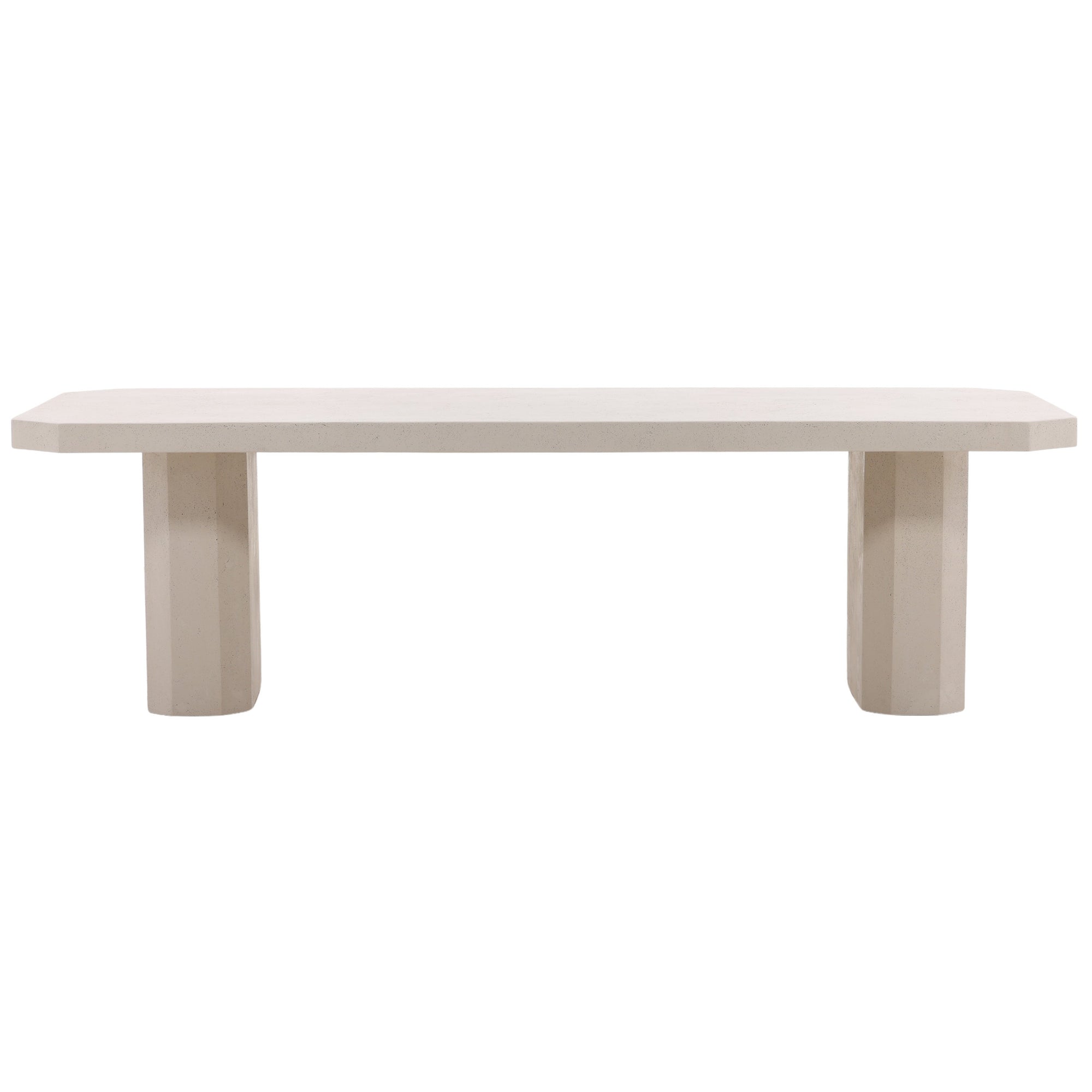 The Prism Outdoor Dining Table is a monumental piece that brings a strong, sculptural presence to outdoor entertaining. Crafted from high-performance concrete in a sophisticated ivory finish, this table is built for durability and modern style. Its expansive rectangular top offers generous space for hosting large gatherings on a patio or in a garden. The Prism Outdoor Dining Table's bold, minimalist design makes it a striking focal point, effortlessly blending a brutalist aesthetic with refined elegance.