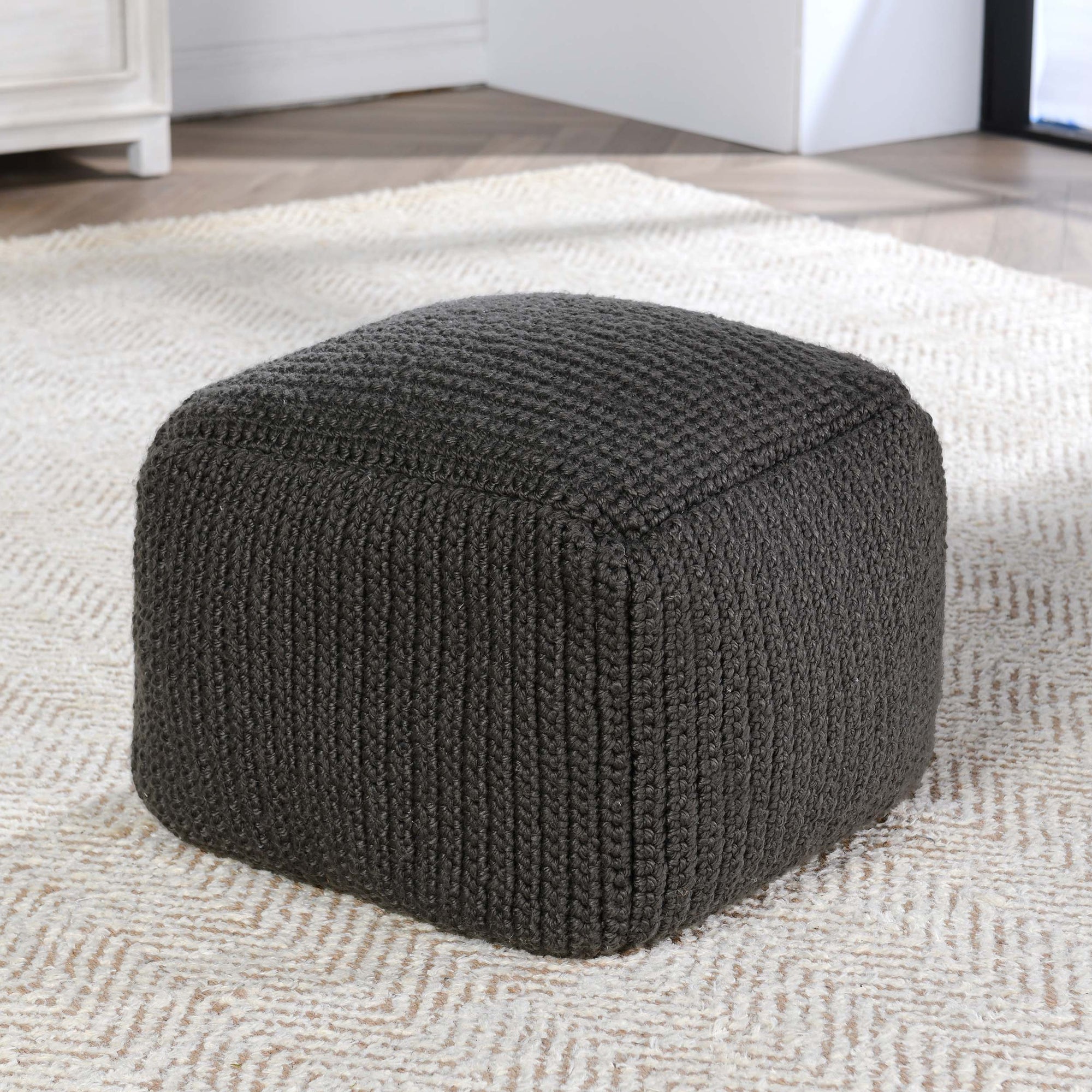 The Prism Pouf gives your outdoor space a statement of coziness with its handwoven knitted pattern. Treated with an outdoor finish to resist fading and moisture, this durable piece makes a modern statement in any setting.