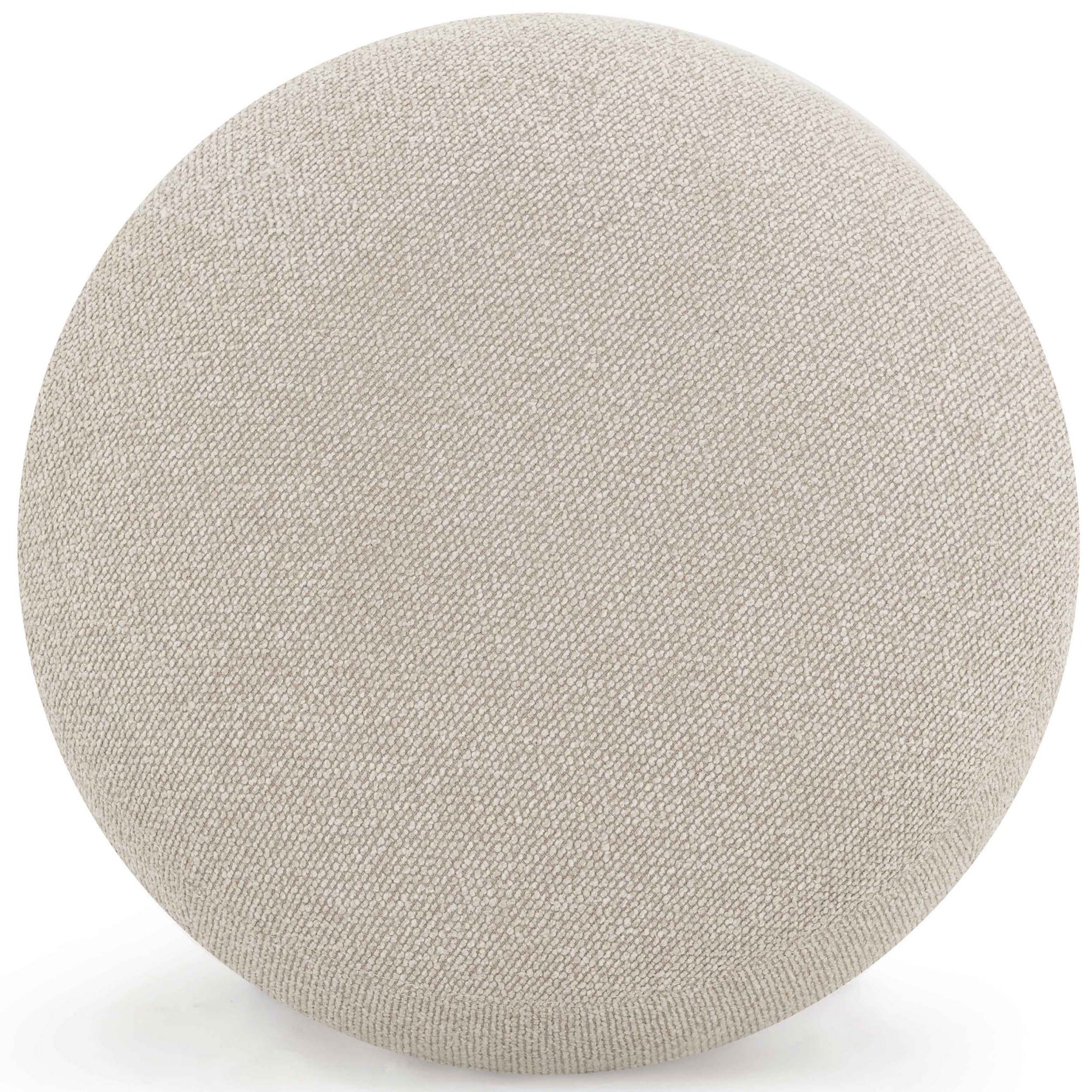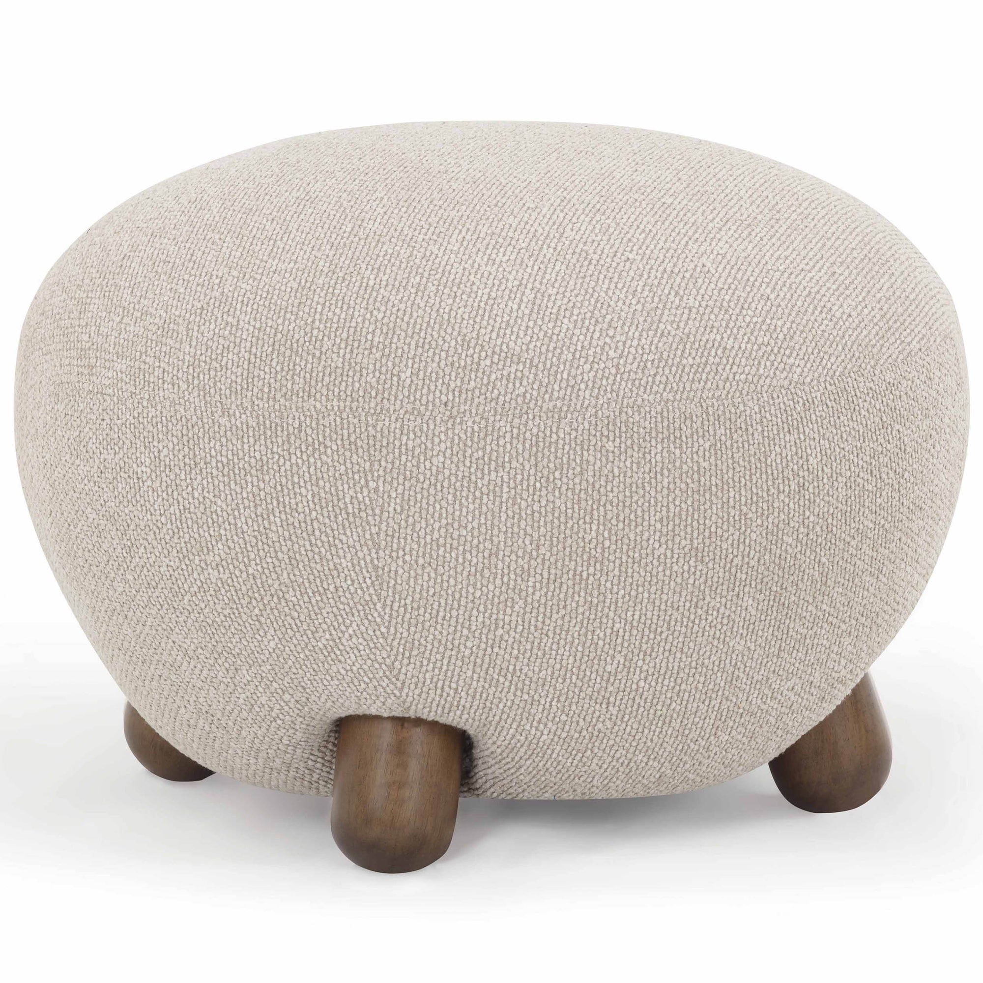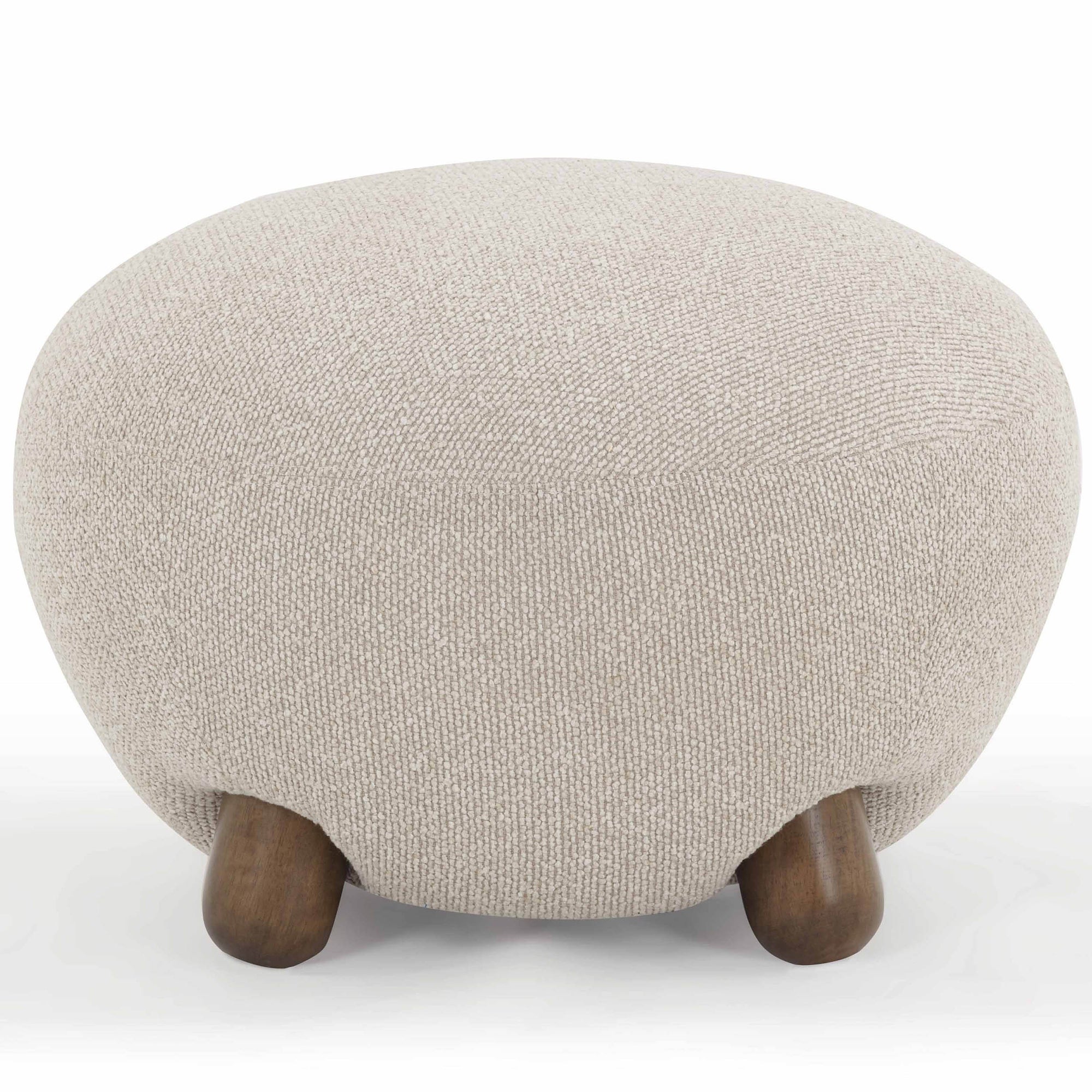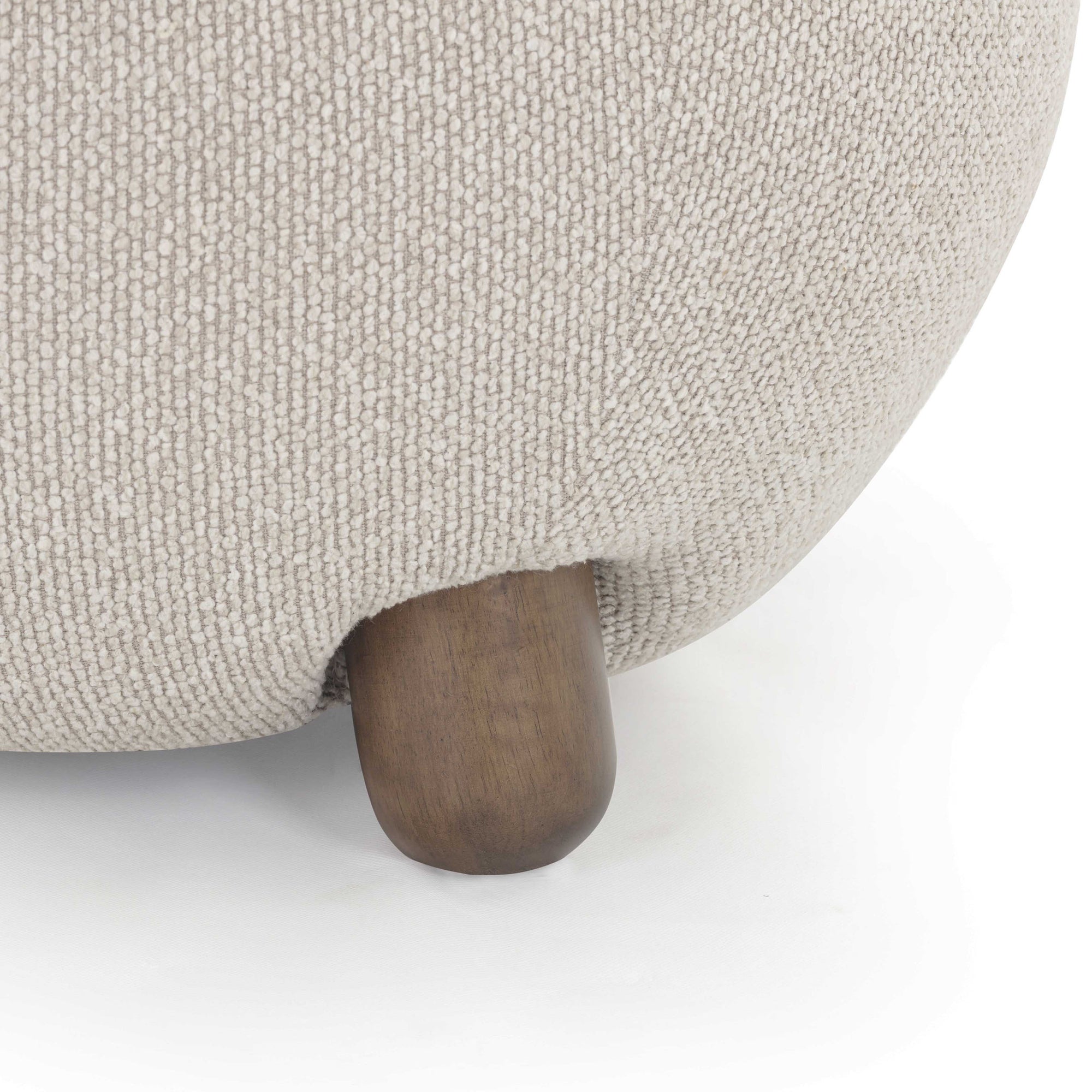 The Pucker Ottoman offers a playful, sculptural design with a rounded silhouette and chunky wood feet. Upholstered in durable, contract-grade boucle, it functions perfectly as a footrest, accent seat, or statement piece, adding both charm and practicality to any living room or bedroom.