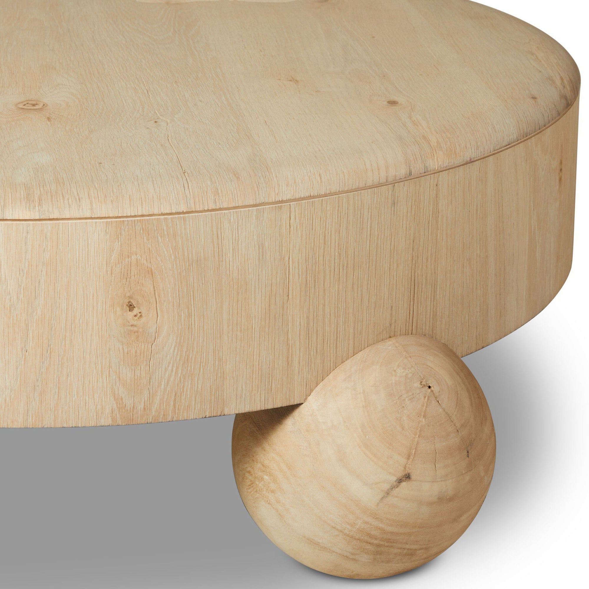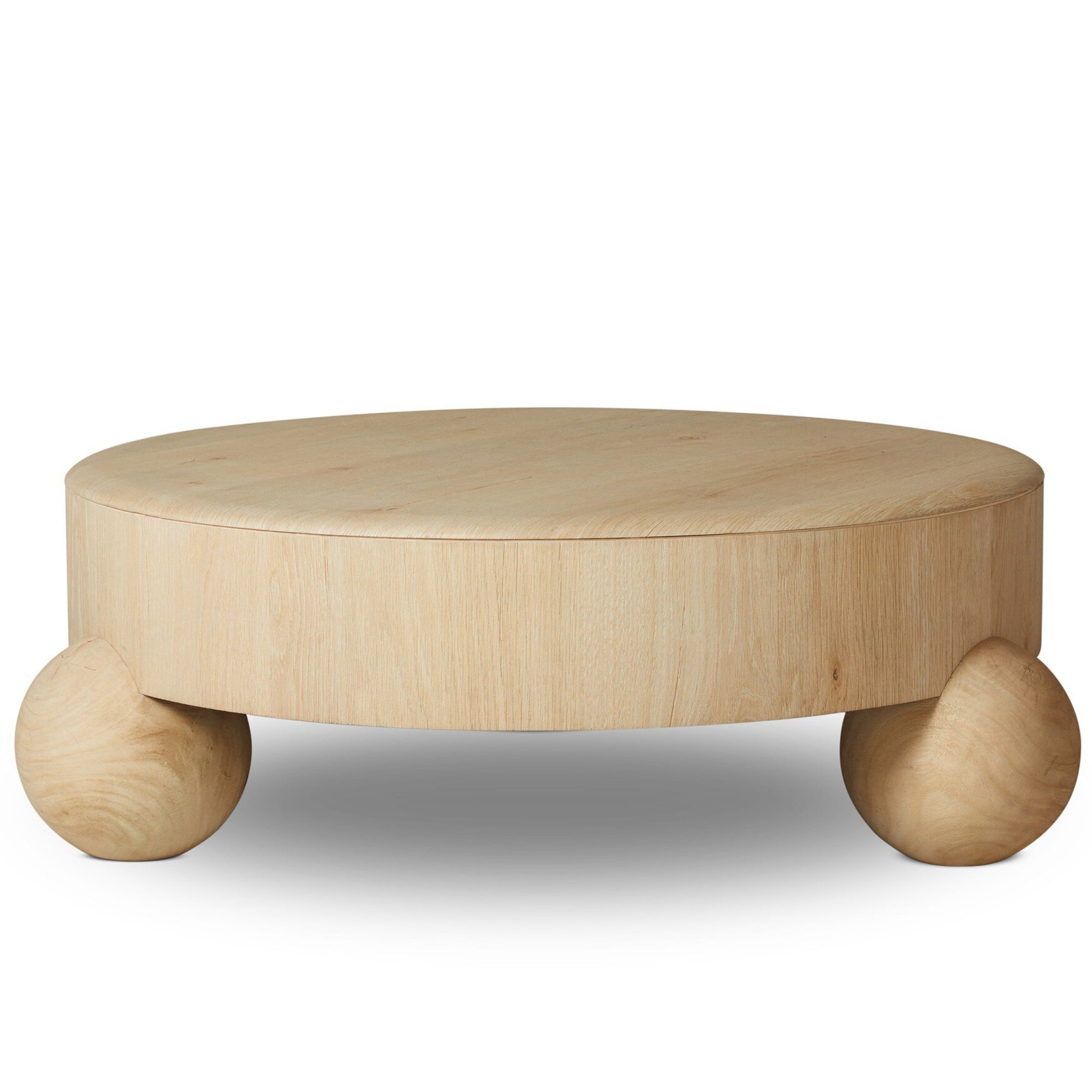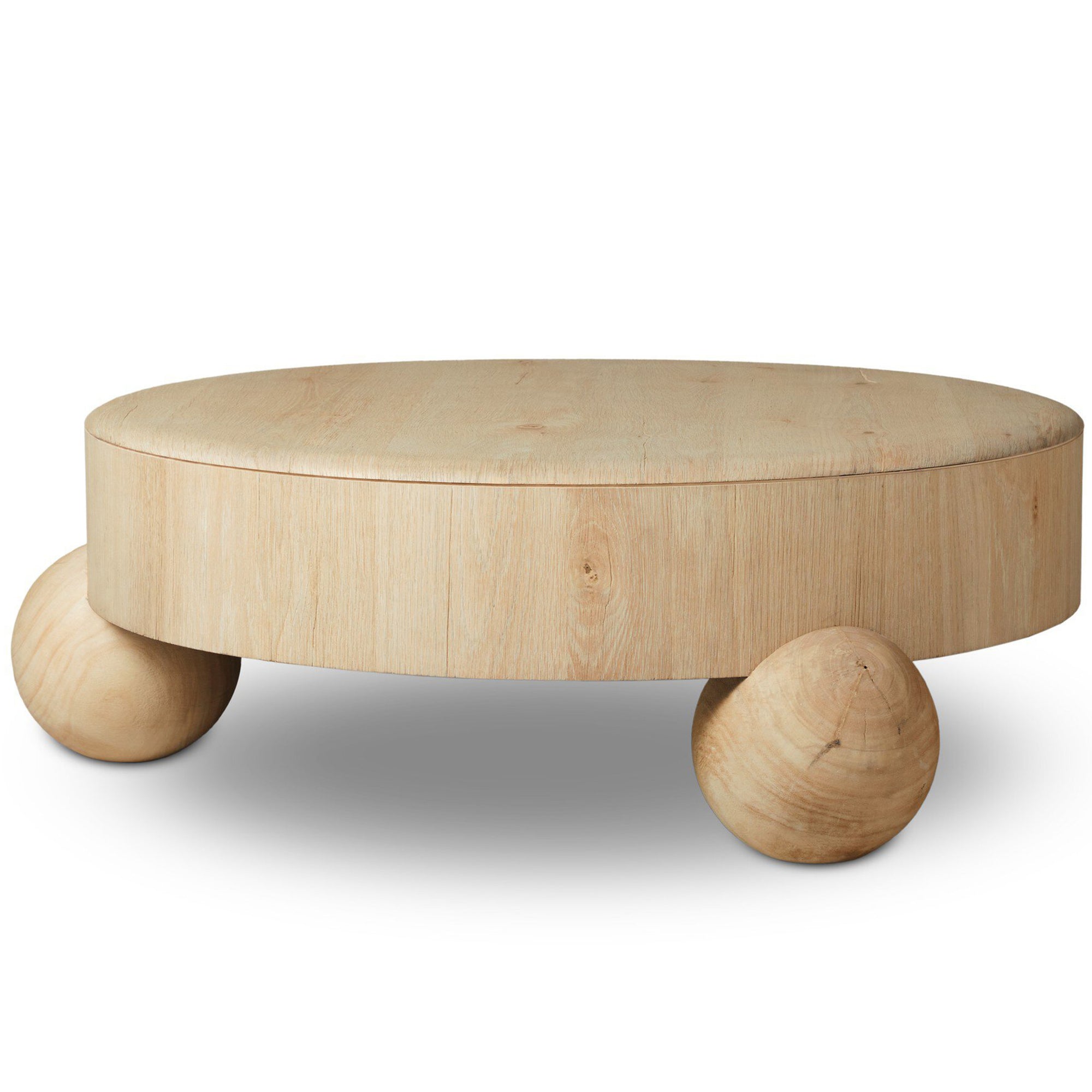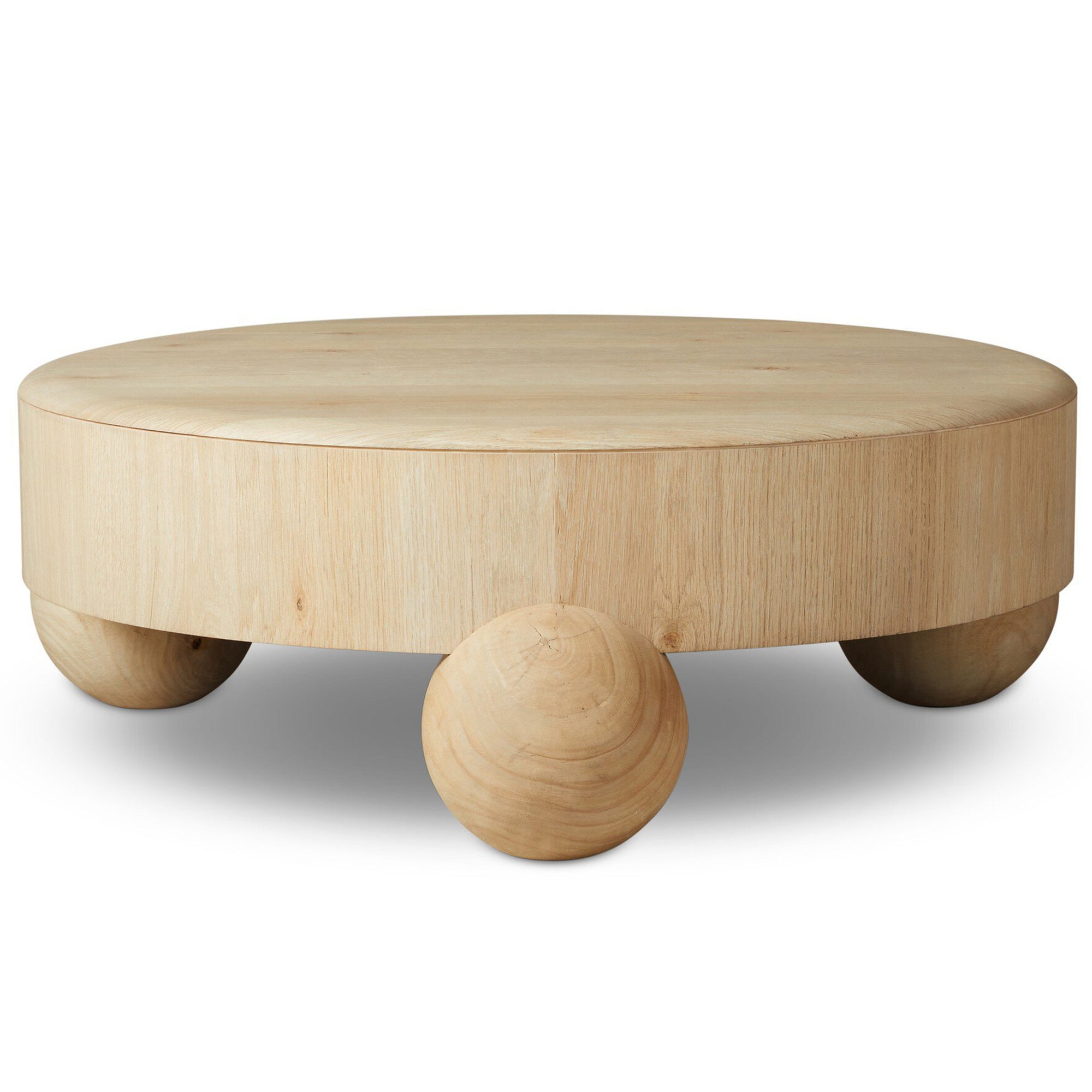 The Raul Coffee Table features a sleek, low-profile design with a round silhouette, finished in American white oak veneer. Its clean lines and sturdy construction make it a modern and understated centerpiece for your living space.