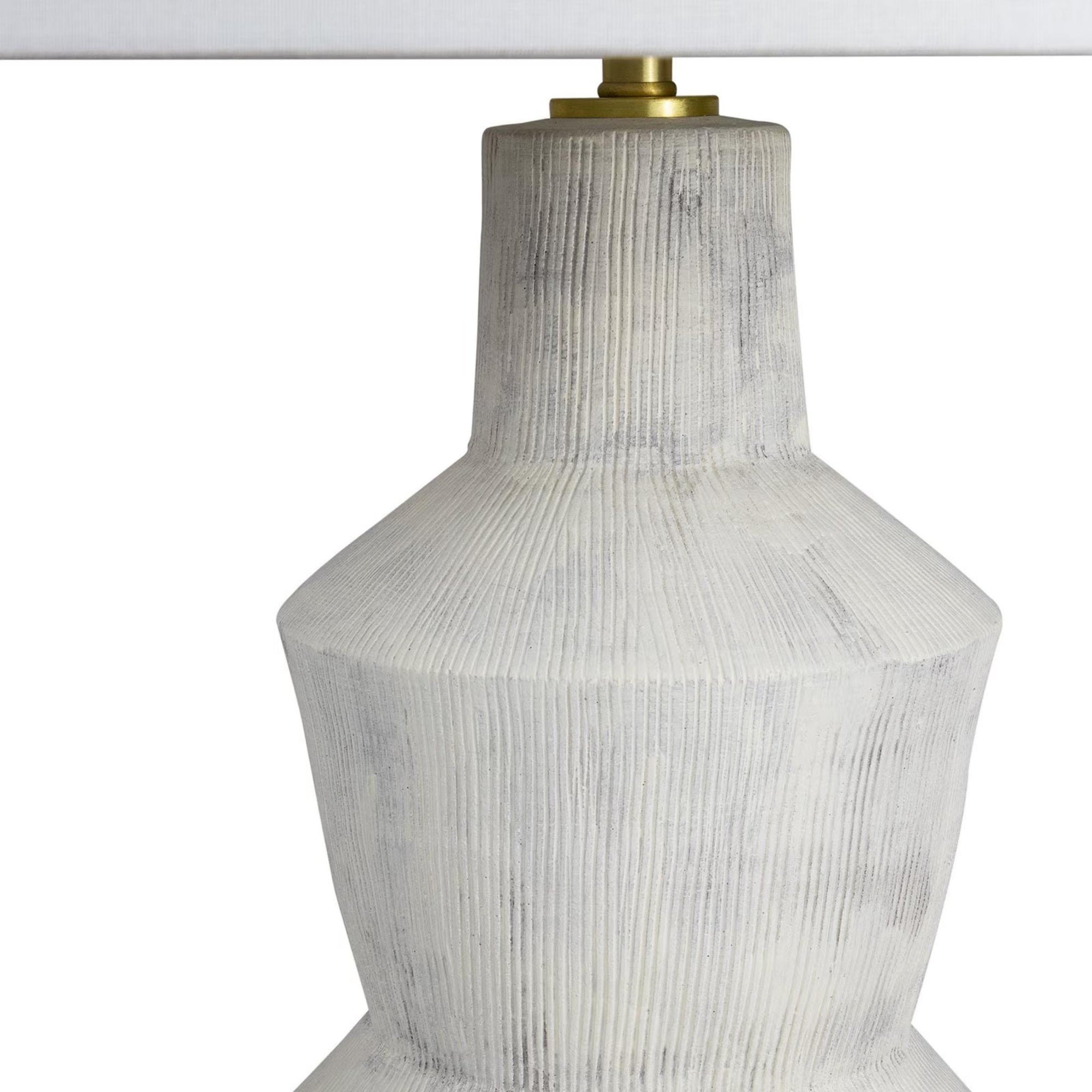 The Rhonda Table Lamp is a celebration of natural beauty and artisanal craftsmanship. Sculpted from rich minerals such as clay, sand, and feldspar, each piece is hand-finished in a matte white glaze, ensuring no two lamps are exactly alike. Topped with a natural linen shade, it casts a softly filtered, comforting glow. Evoking a sense of calm and connection to nature, the Rhonda Lamp brings an elemental yet elegant presence to any room. Perfect for bedside tables, consoles, or reading nooks, it balances artistry and function with effortless style.