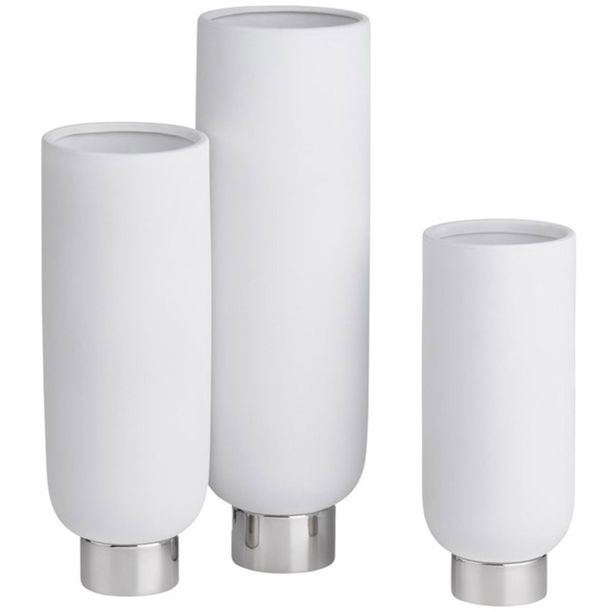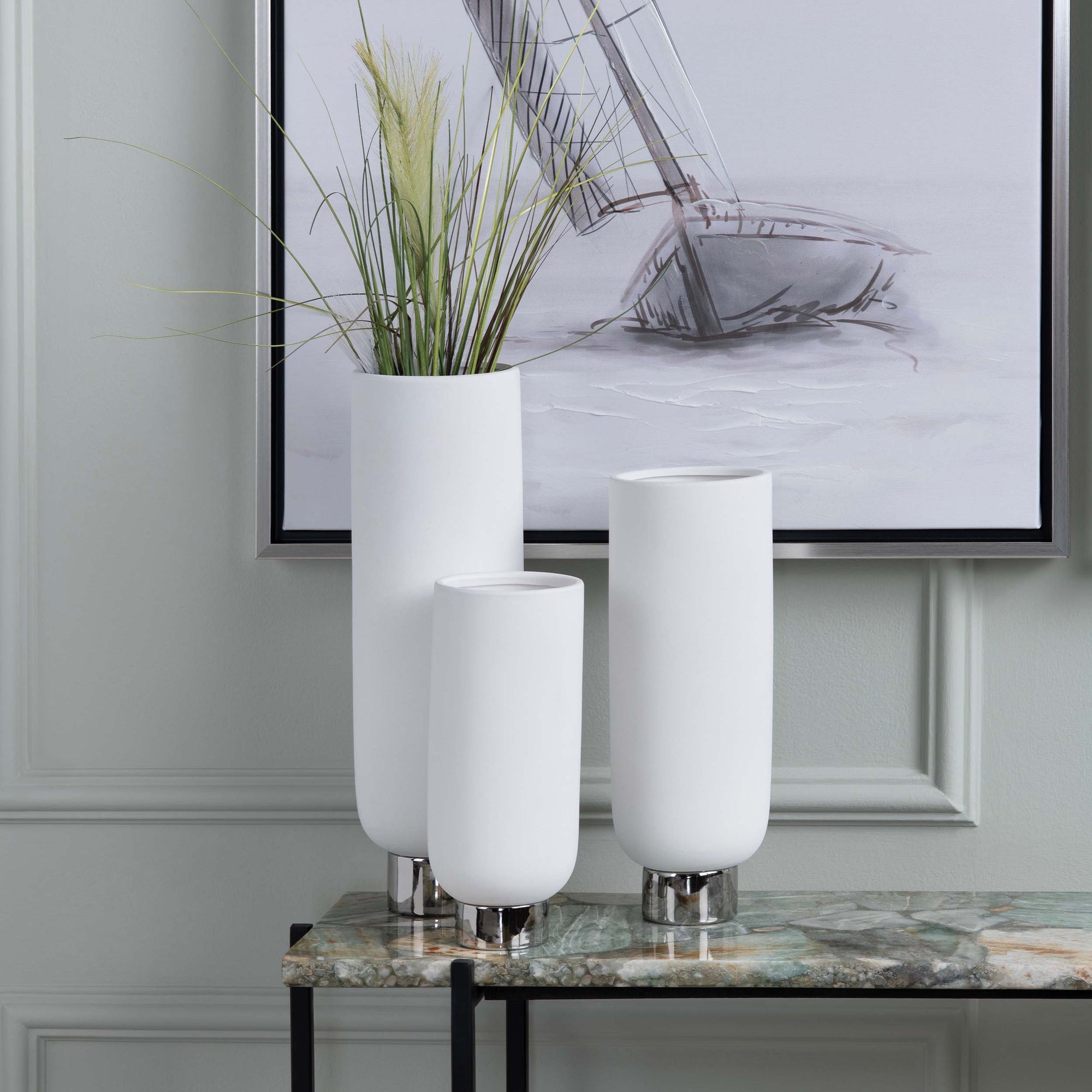 The Rue Cylinder Vases are sleek, transitional-style ceramic vases designed to enhance any tabletop or shelf. Their clean cylindrical forms make them perfect for displaying flowers or as standalone decorative accents, adding elegance and modern simplicity to your interior décor.