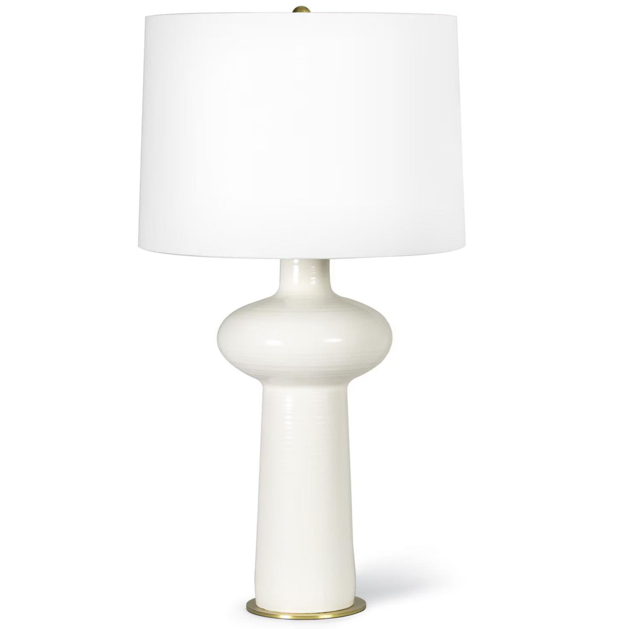 The Sabina Table Lamp combines modern elegance with a distinctive sculptural form. Its sleek ceramic base features an oval top that gently tapers to a slender base, creating a refined silhouette. Finished in soft off-white, the lamp brings understated sophistication while seamlessly blending into a variety of décor styles. Ideal for bedside tables, desks, or accent surfaces, the Sabina Lamp provides both stylish flair and functional lighting, making it a chic addition to any contemporary space.