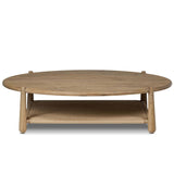 A design collaboration by Amber Lewis and Four Hands. The Salvador Coffee Table combines rich materials and thoughtful design. Crafted from resawn oak with an aged, smoked finish, its rounded, two-tier silhouette highlights heavy graining and natural knots for organic character. A woven paper cord lower shelf adds texture while providing functional storage, making this piece both stylish and practical for any living space.
