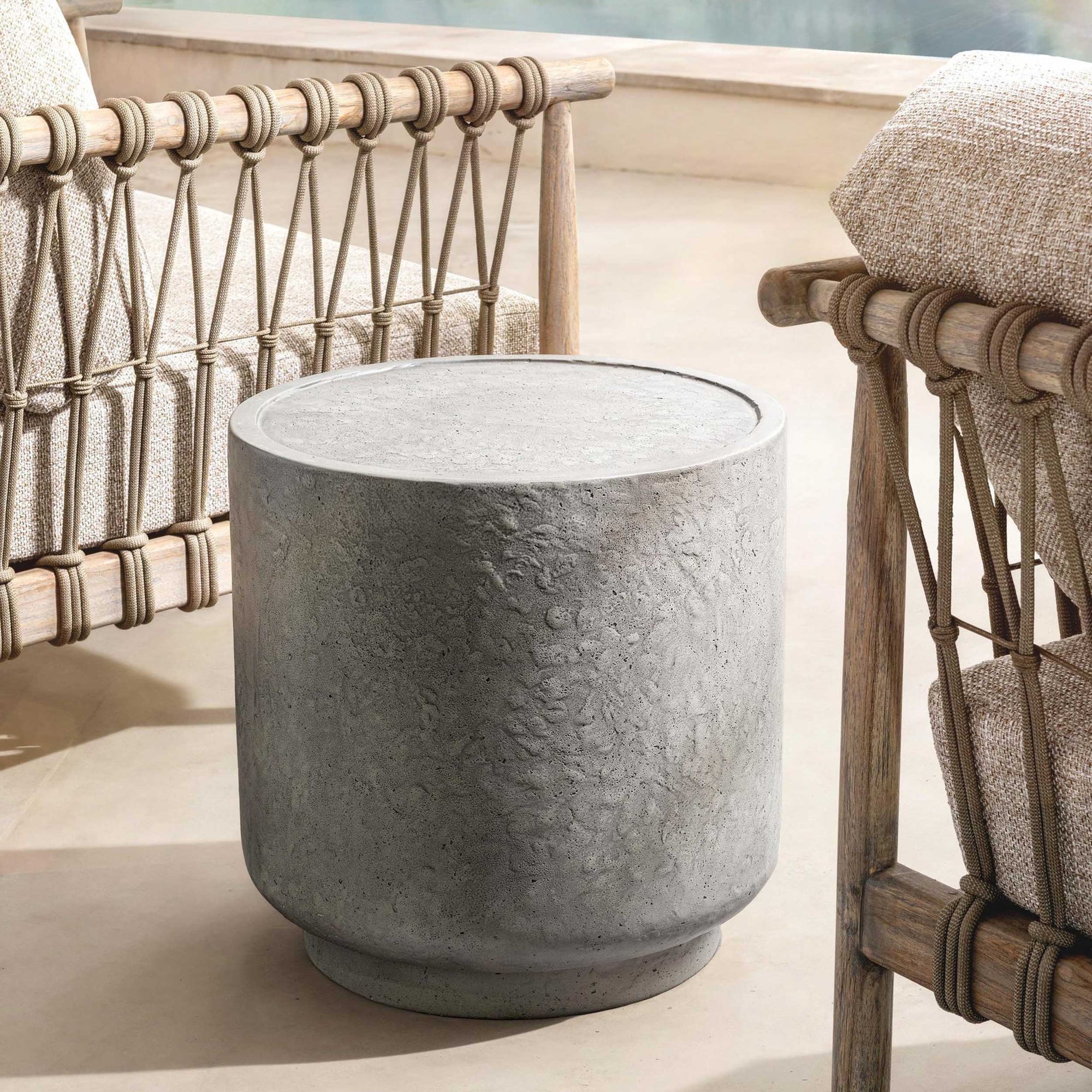 The Sania Outdoor Round Accent Table adds modern sophistication to any patio or garden. Its smooth cylindrical shape and stone-like texture bring a refined organic feel to open-air lounging. Durable, weather-resistant, and effortlessly stylish, this table transforms outdoor gatherings with contemporary comfort and timeless design.