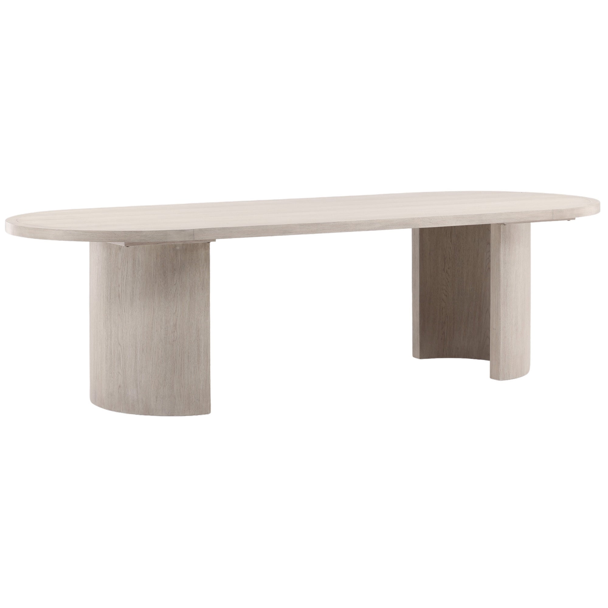 The Sarai Dining Table offers a sophisticated centerpiece for your dining room. Crafted from durable rubber wood with a beautiful oak veneer, this table combines strength with a refined aesthetic. The expansive rectangular top provides generous space for hosting large dinner parties or family gatherings. Its light grey finish lends a contemporary and airy feel to any space, effortlessly complementing a variety of decor styles. The Sarai Dining Table is an elegant choice for modern dining.