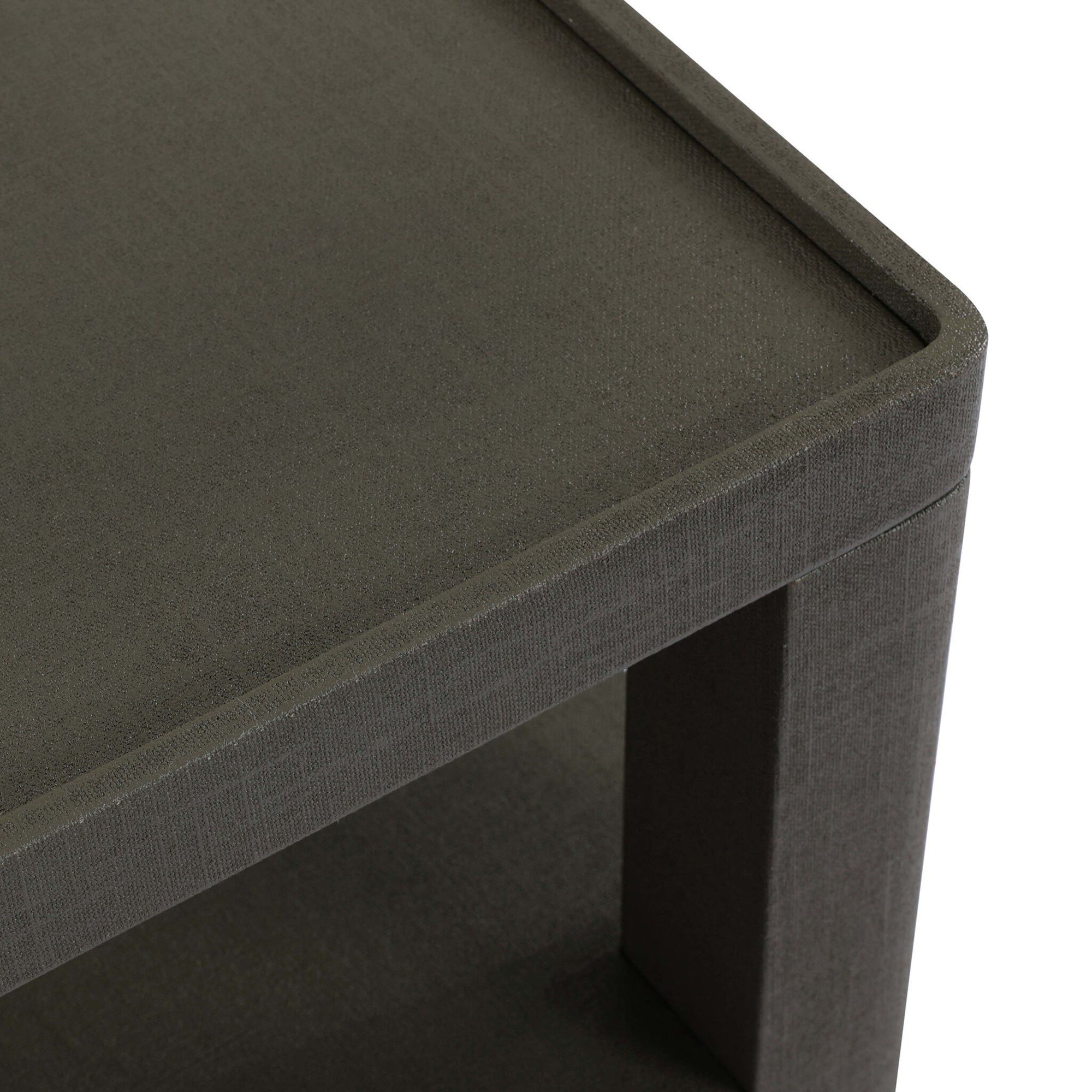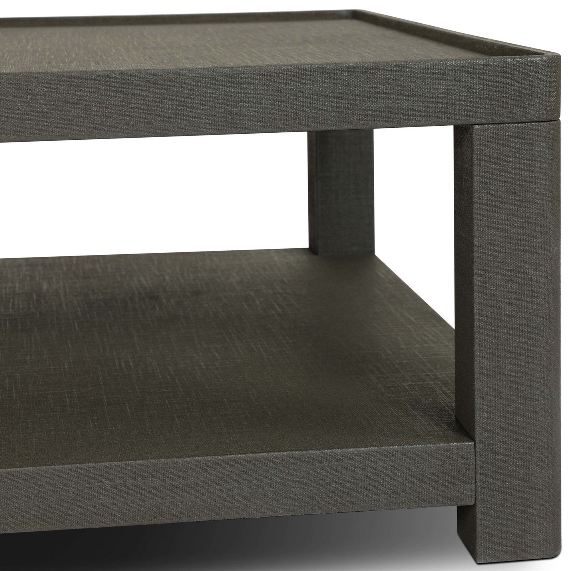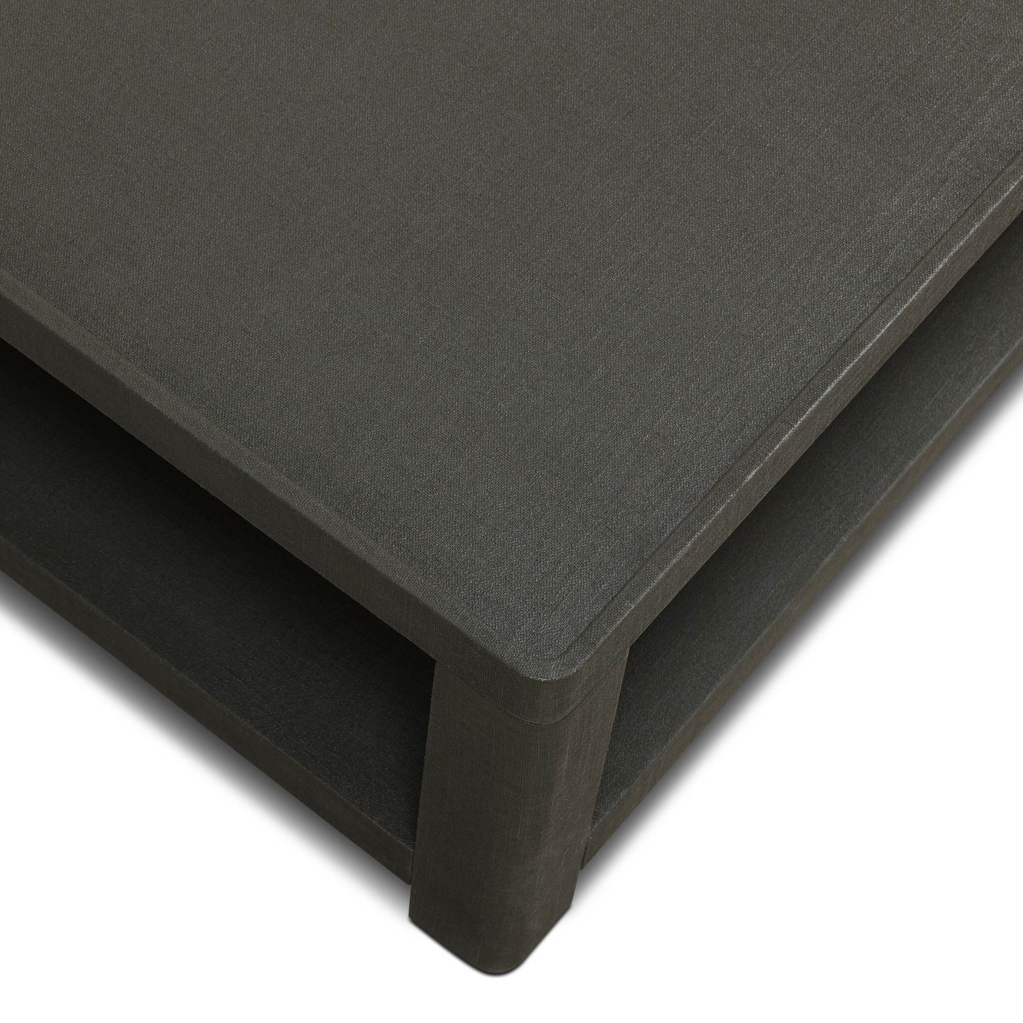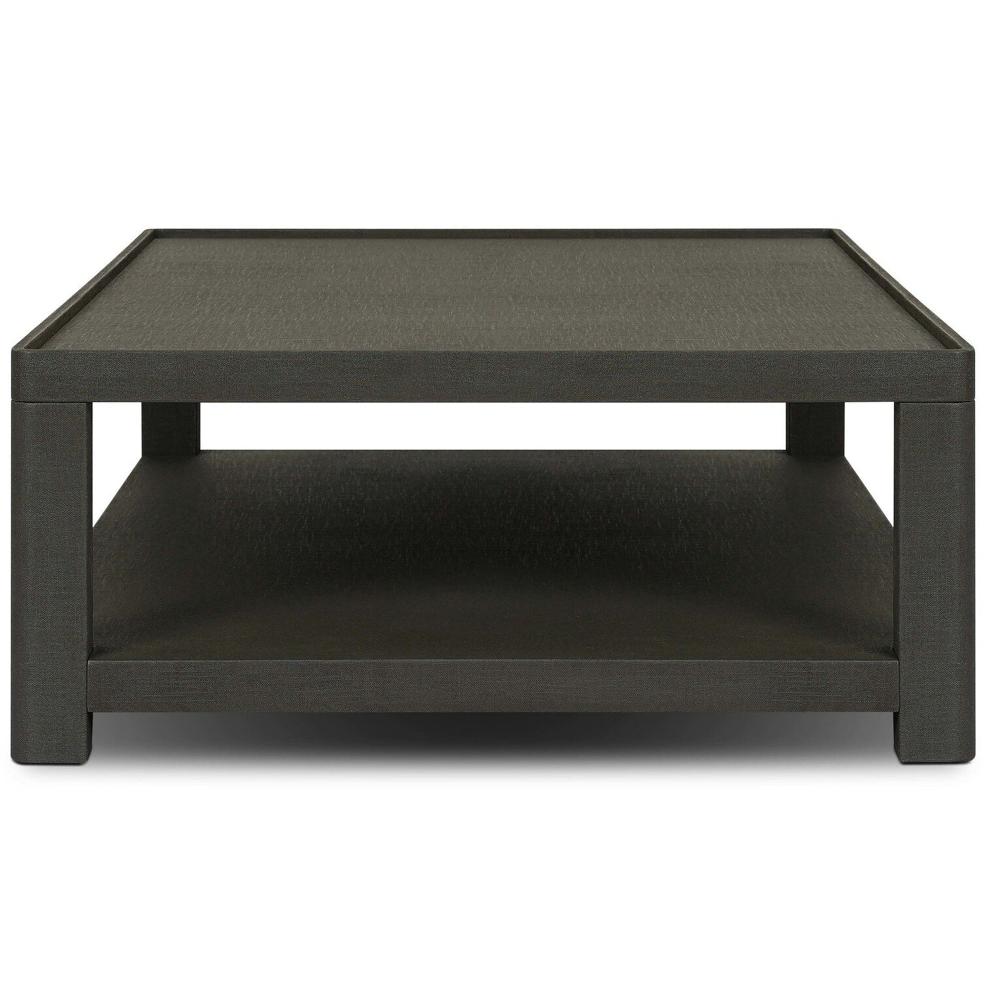 The Sasha Coffee Table updates a Parsons-inspired silhouette. Rounded corners, a tray top, and ample storage space underneath are all finished with a soft layer of lacquered dark green linen, resulting in a dimensional look that is as functional as it is inviting. This stylish piece is a design collaboration by Amber Lewis and Four Hands.