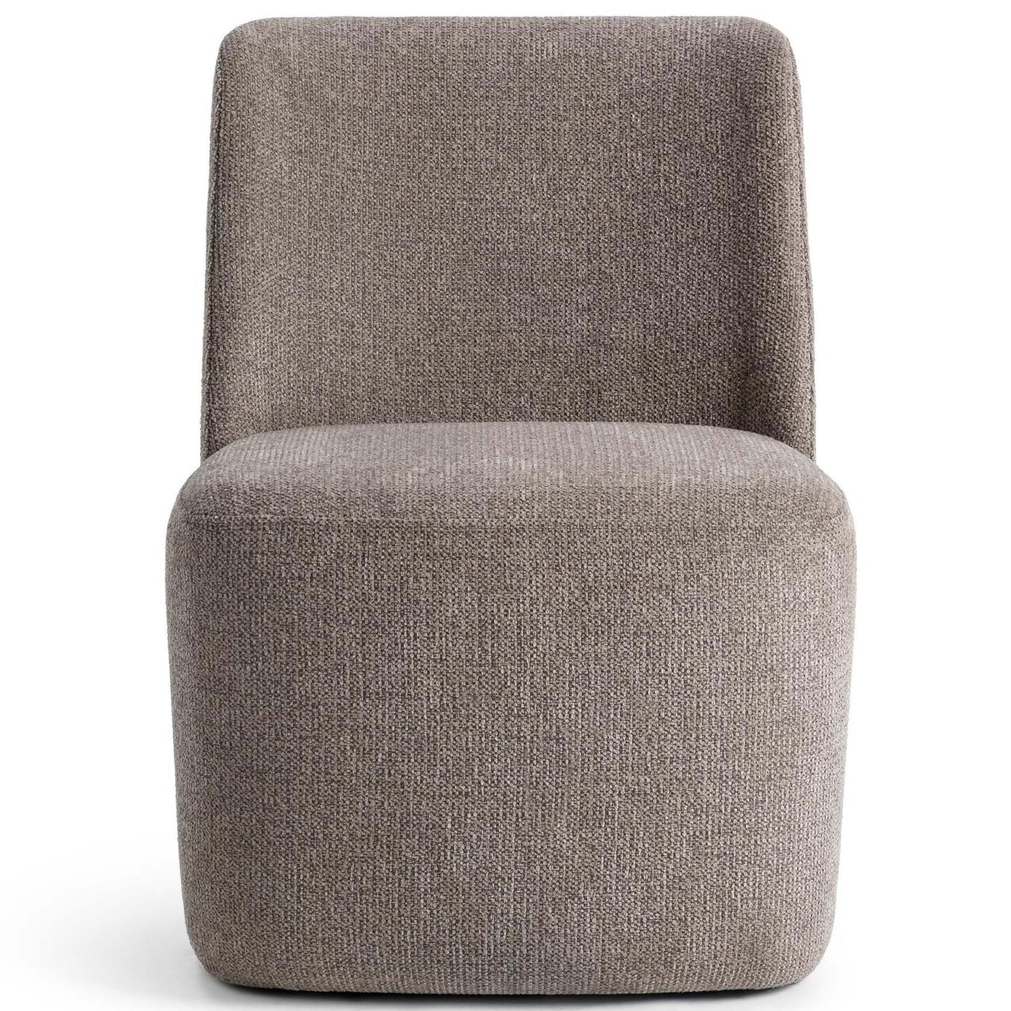 The Senna Dining Chair is effortlessly modern and versatile, bringing soft sophistication to any space. Upholstered in durable, textured fabric, it offers both comfort and style for everyday living. Smooth caster wheels add mobility, making it perfect for a dining room, home office, or bedroom lounge. Its sleek, armless silhouette creates a contemporary look that pairs beautifully with any décor.