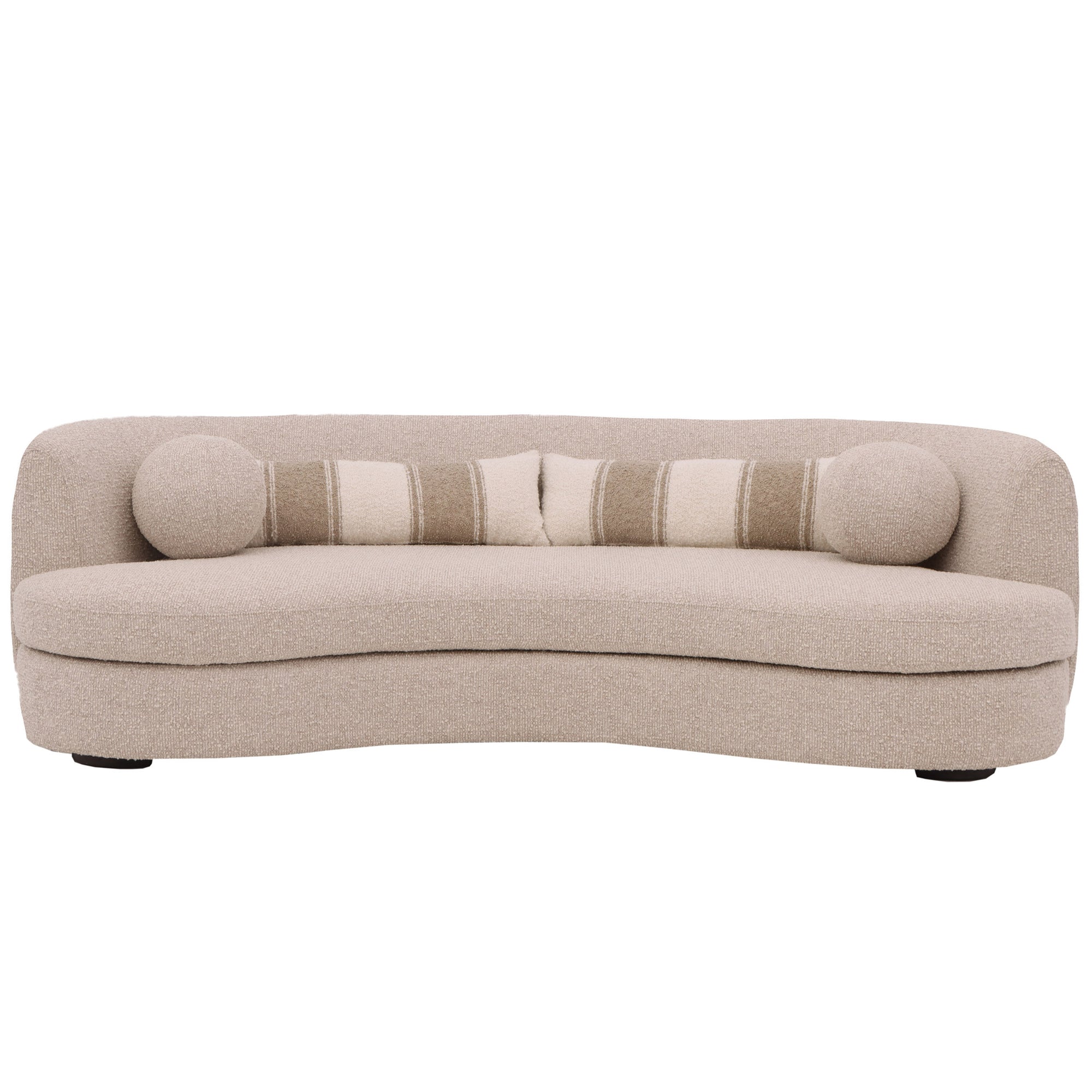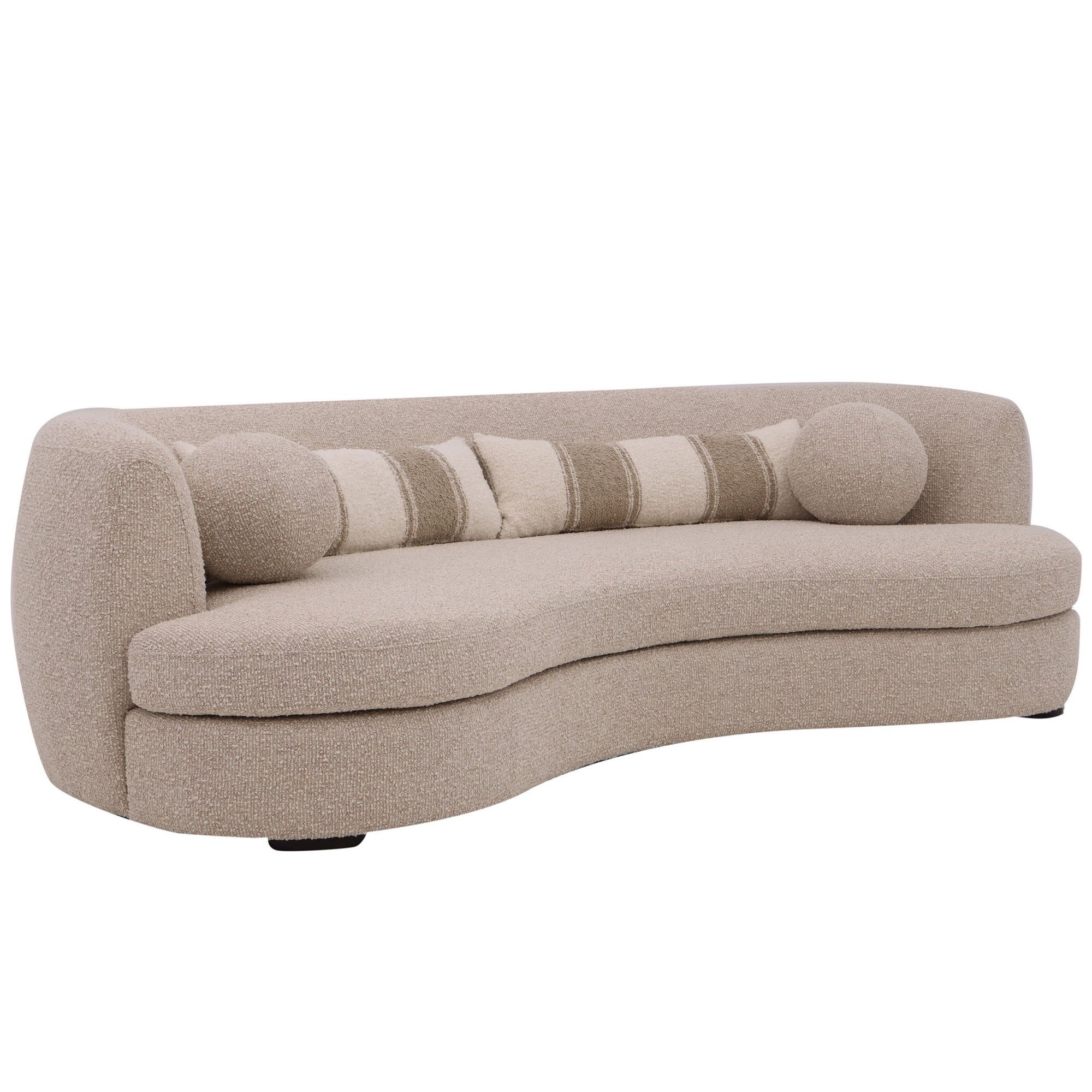 The Sennon Curved Sofa features a luxurious 100% polyester performance fabric cover, offering durability and comfort. Its curved design brings a contemporary flair, making it a perfect statement piece for modern living spaces.