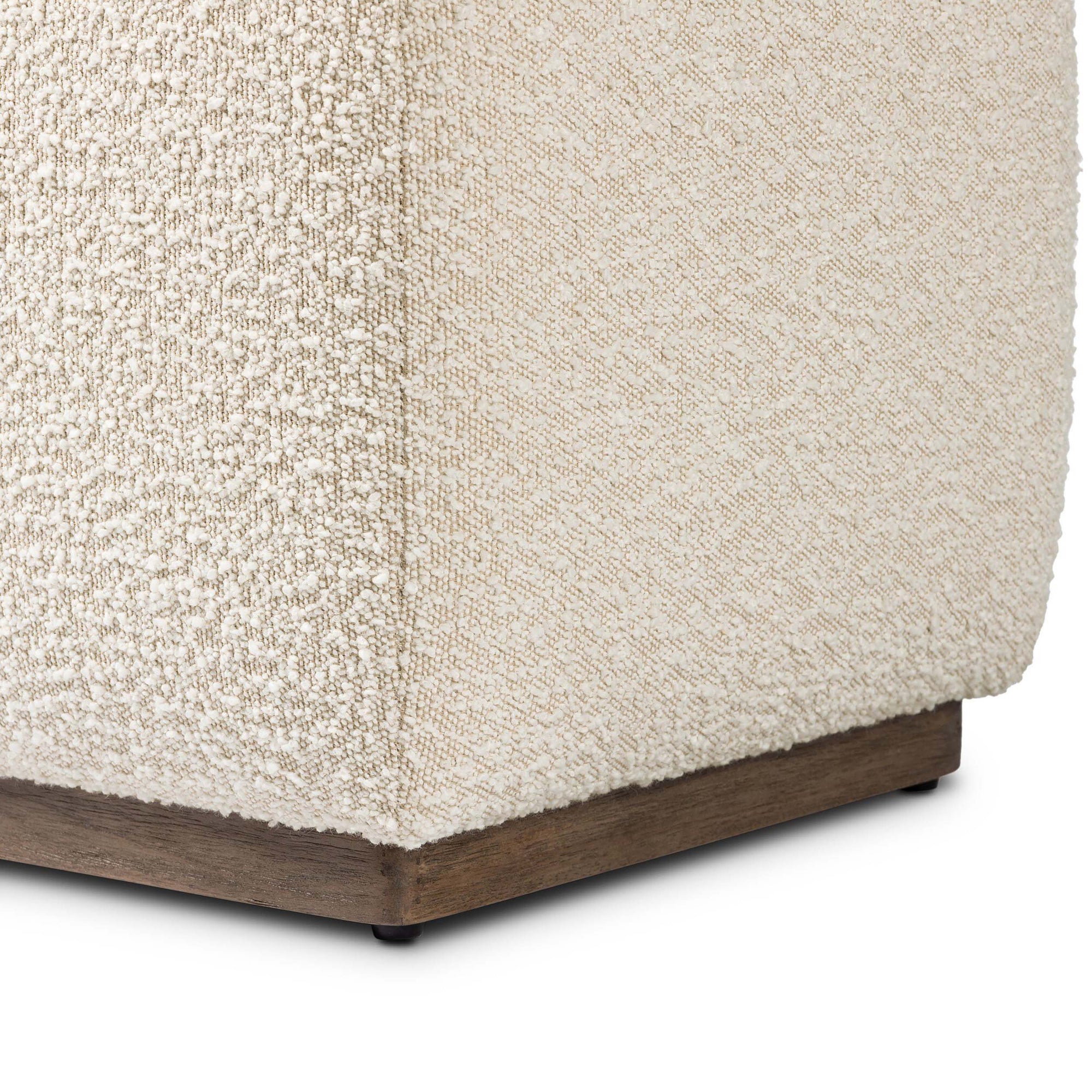 The Sinclair Accent Bench is upholstered in a chunky, textural boucle performance fabric and paired with a subtly distressed parawood base. This versatile bench can be placed just about anywhere in the home. Performance fabrics are specially created to withstand spills, stains, high traffic, and wear, ensuring long-term comfort and unmatched durability.