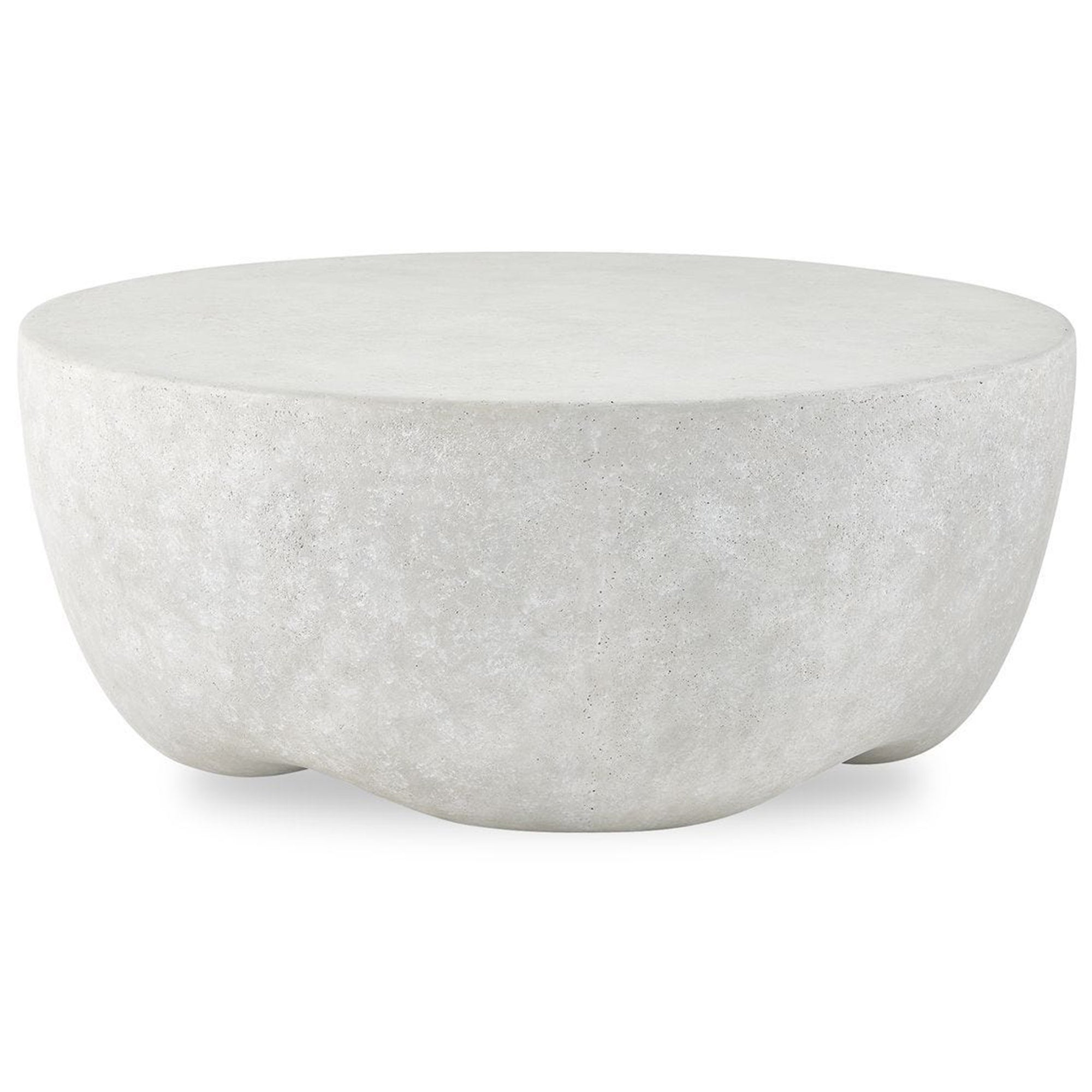 The Wright Coffee Table is constructed from glass reinforced concrete and features a softly contoured silhouette in a natural light stone color. Suitable for both indoor and outdoor use, this sculptural piece showcases a smooth, circular top that transitions into a rounded, tapered base. The minimalist design and durable material provide a modern, architectural presence that complements various decor styles from contemporary to industrial.